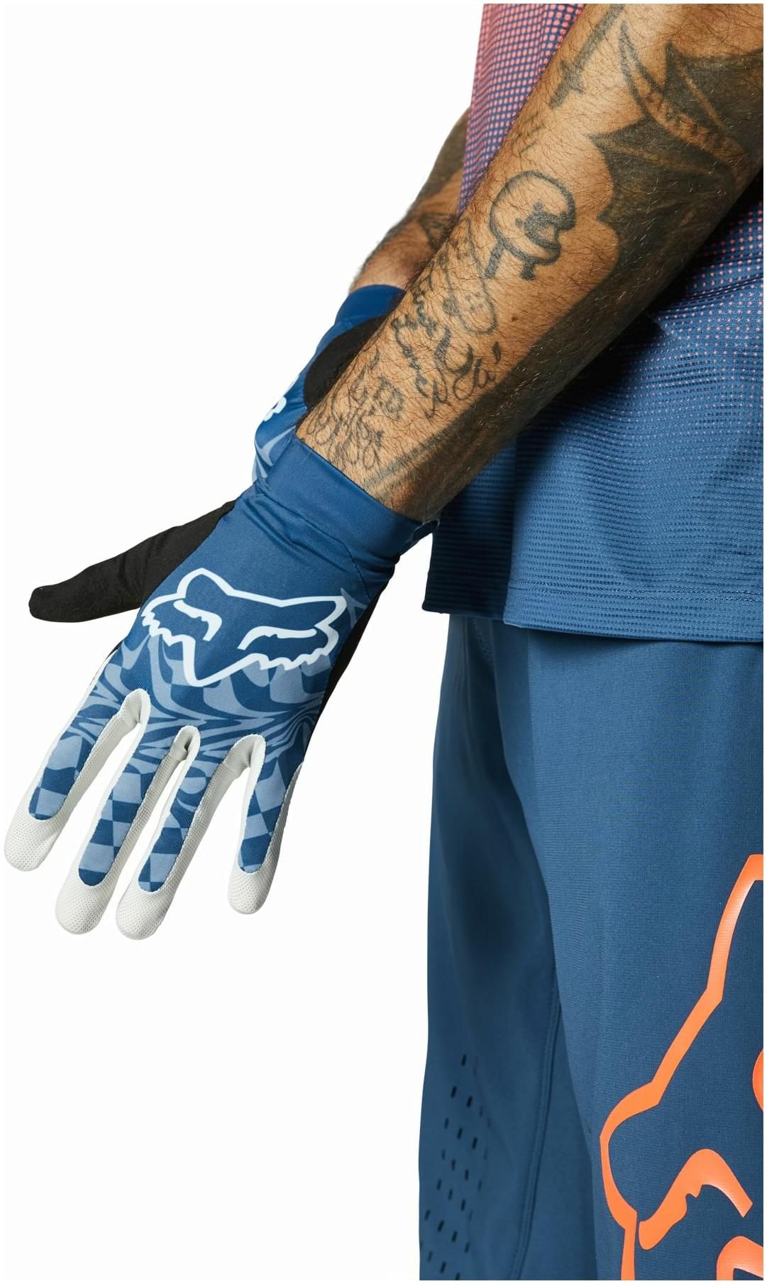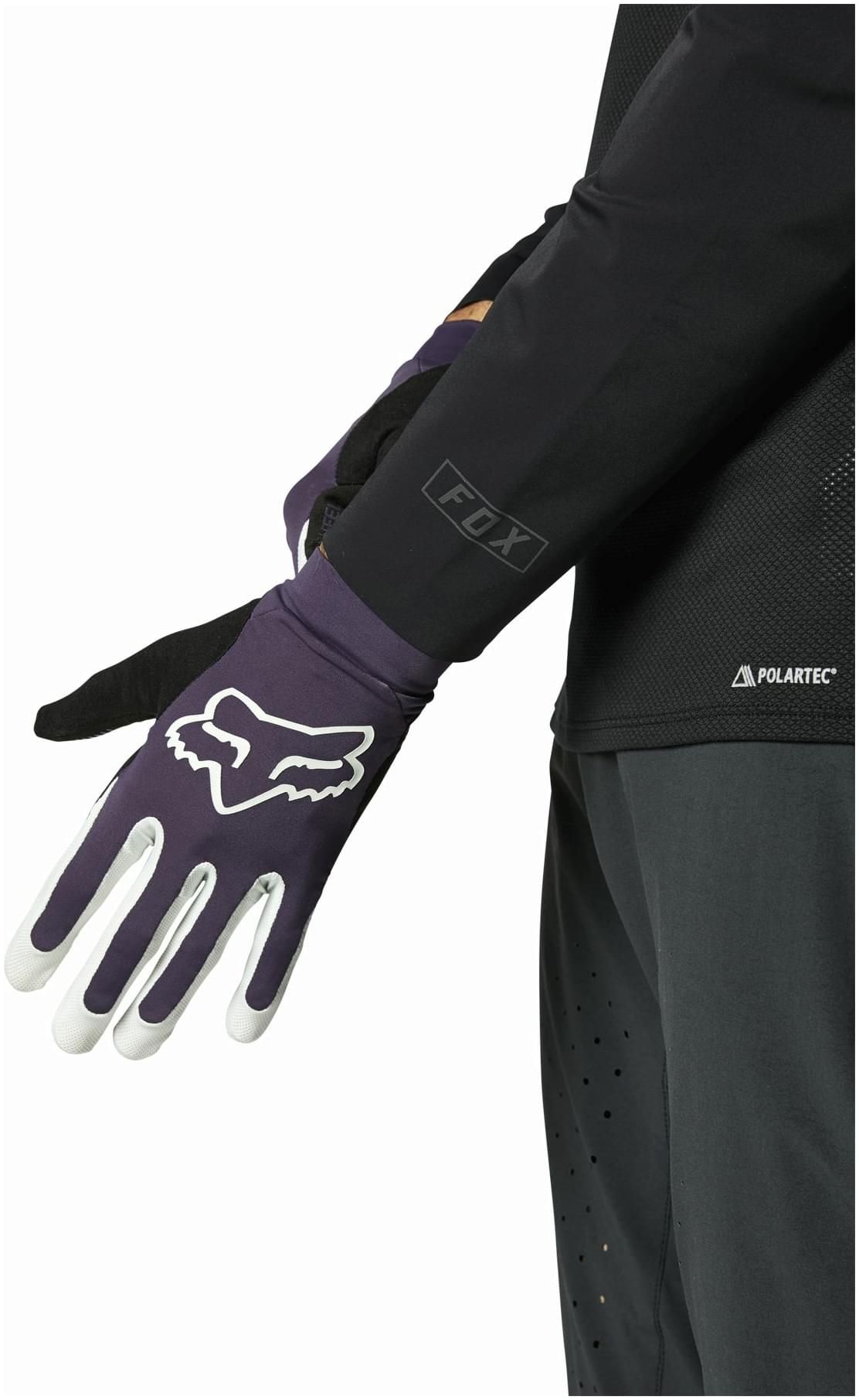 Feel the bars like never before. The Flexair Gloves are a minimalist glove with an exceptional fit and lightweight feel. The stretch mesh finger gussets (the fabric between your fingers) increases flexibility as well as helps channel air through the glove for superior comfort. The Flexair glove also features a conductive thread on the thumb and index finger so you can use your phone without removing your gloves. Capture every moment and feel free to share - #foxracing.