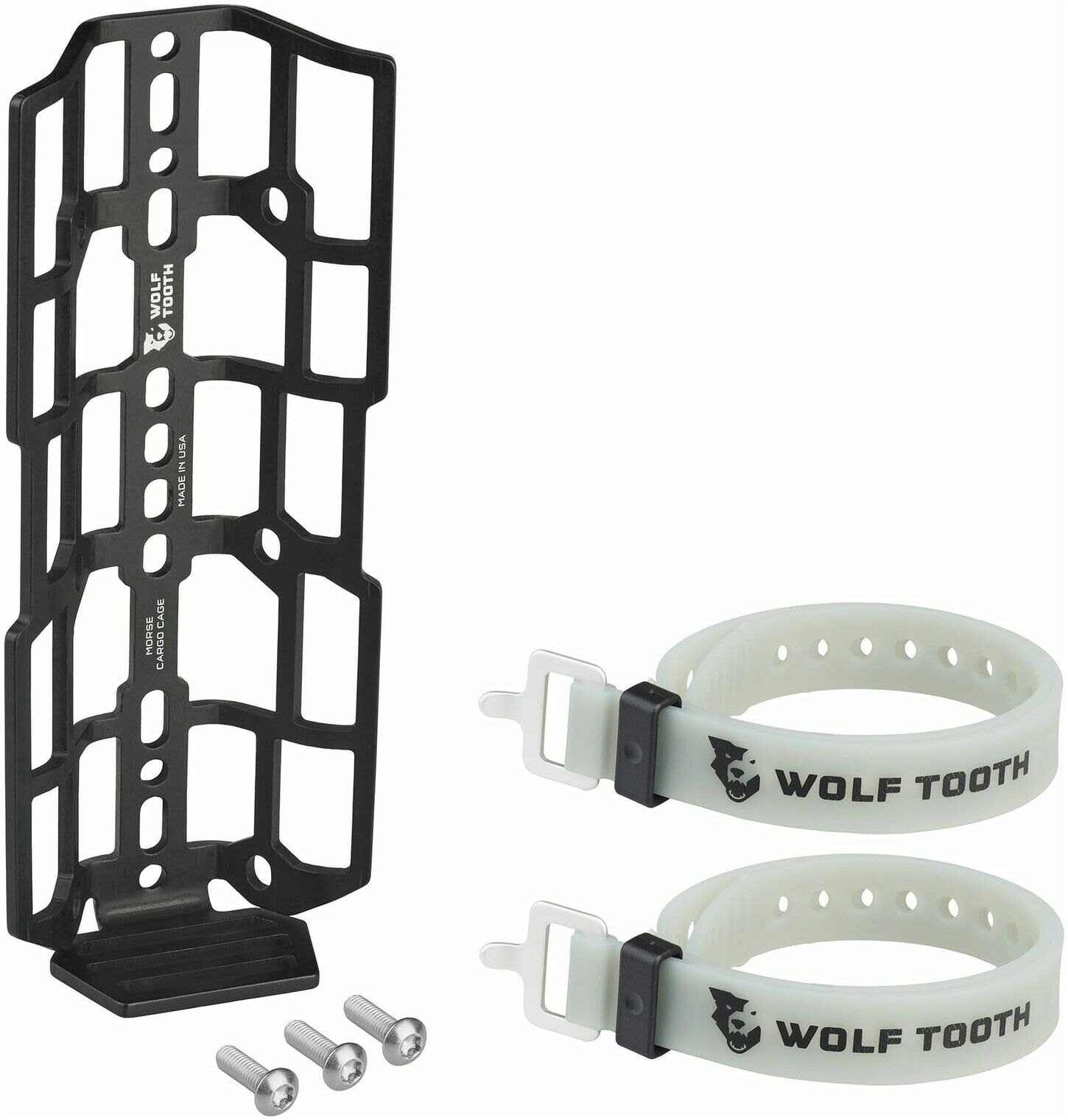 The Wolf Tooth Morse Cargo Cage is a handy addition to the bike of any bikepacking, self-supported race or long-distance ride fan. Using Wolf Tooth's own straps or ties of your own, it will hold your water bottle, fork bag or other essentials safely.