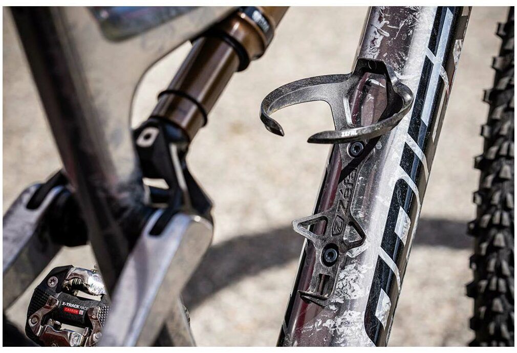 Thanks to the advanced make up of carbon fibres used in the cage and the multiple points of contact, it grips whatever bottle you're using no matter what terrain you're on. It's also incredibly strong due to the high level of reinforcement used to back up the contact points to prevent it breaking.