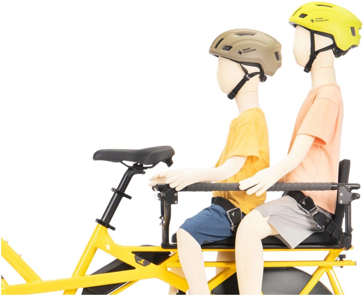 - When riding a bike with room for two, use a pair of seat belts for up to two kids in the Clubhouse or Captain's Chair