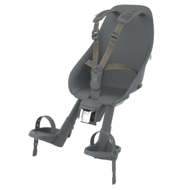 The 5-point adjustable harness features a child-proof buckle which can be undone by yourself with just one hand if the other happens to be full. The foot rests are also adjustable and feature rubber restraints.