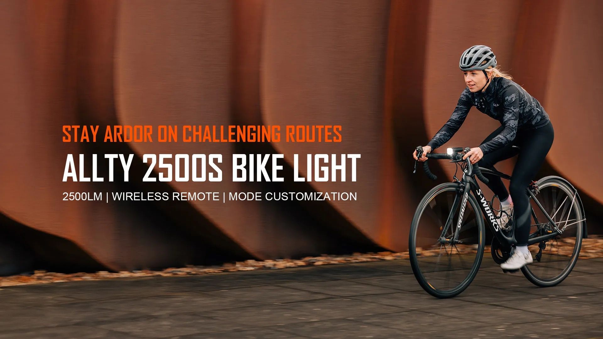 The Allty 2500S is a powerful bicycle light, specifically designed for cycling enthusiasts. Whether tackling rugged mountain trails or cruising along busy roads, the Allty 2500S has got you covered. For MTB rides, you can mount the light on your helmet for better visibility of obstacles like branches. Continuing the minimalist tradition of the Allty series, the Allty 2500S features two high-efficiency LEDs. It emits a dual-angle beam of up to 2500 lumens, ensuring both close-range and far-reaching illumination, revealing more of the trail and ground. The always-on daytime running light significantly enhances your presence, keeping you safer.