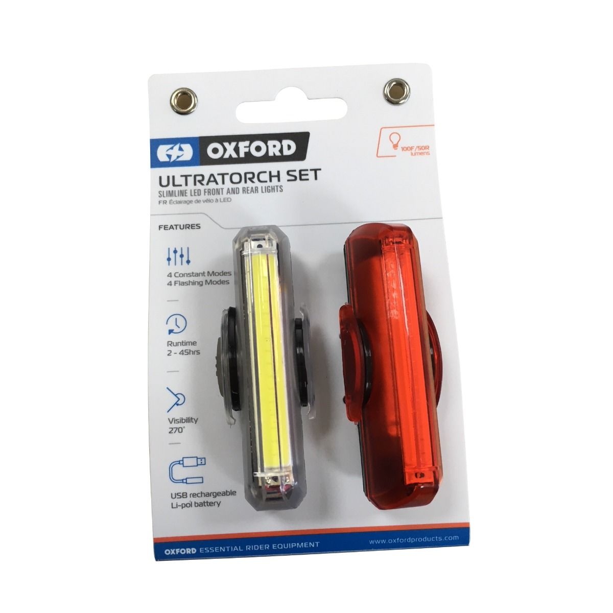 The Oxford UltraTorch Slimline LED lights are discrete safety lights, ideal for the commuter. Very easy to attach and convenient to recharge.