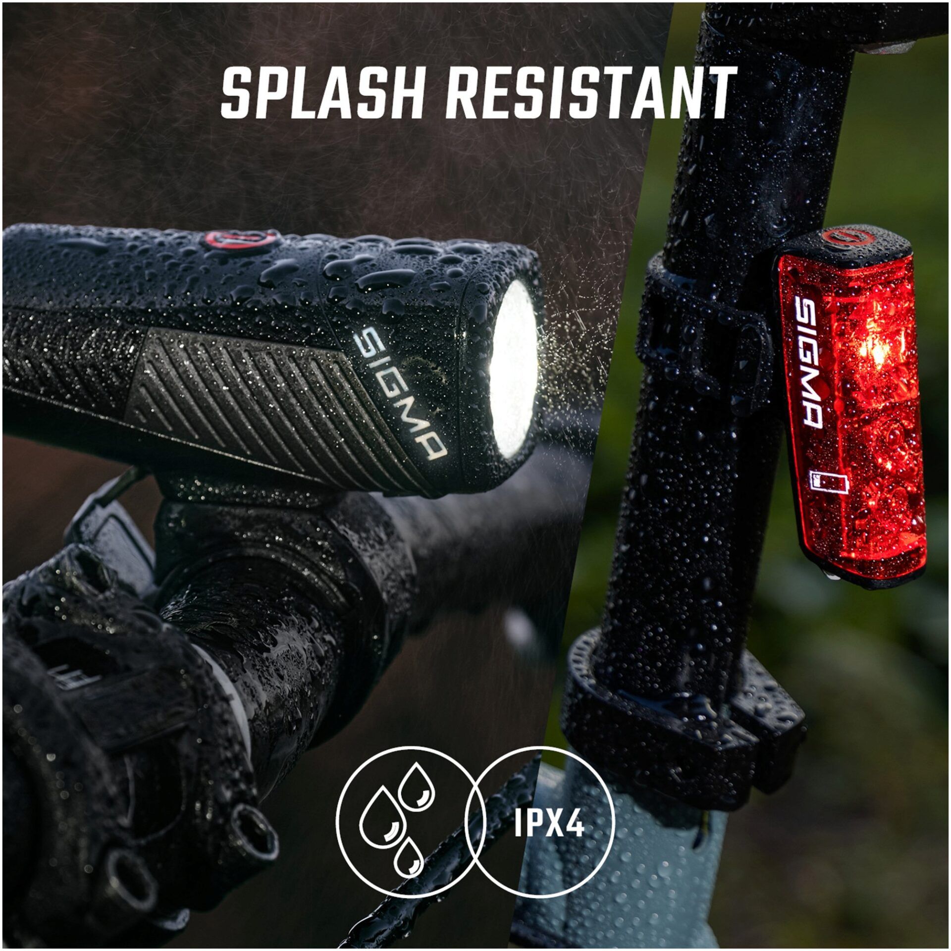 - Splash resistant in accordance with IPX4