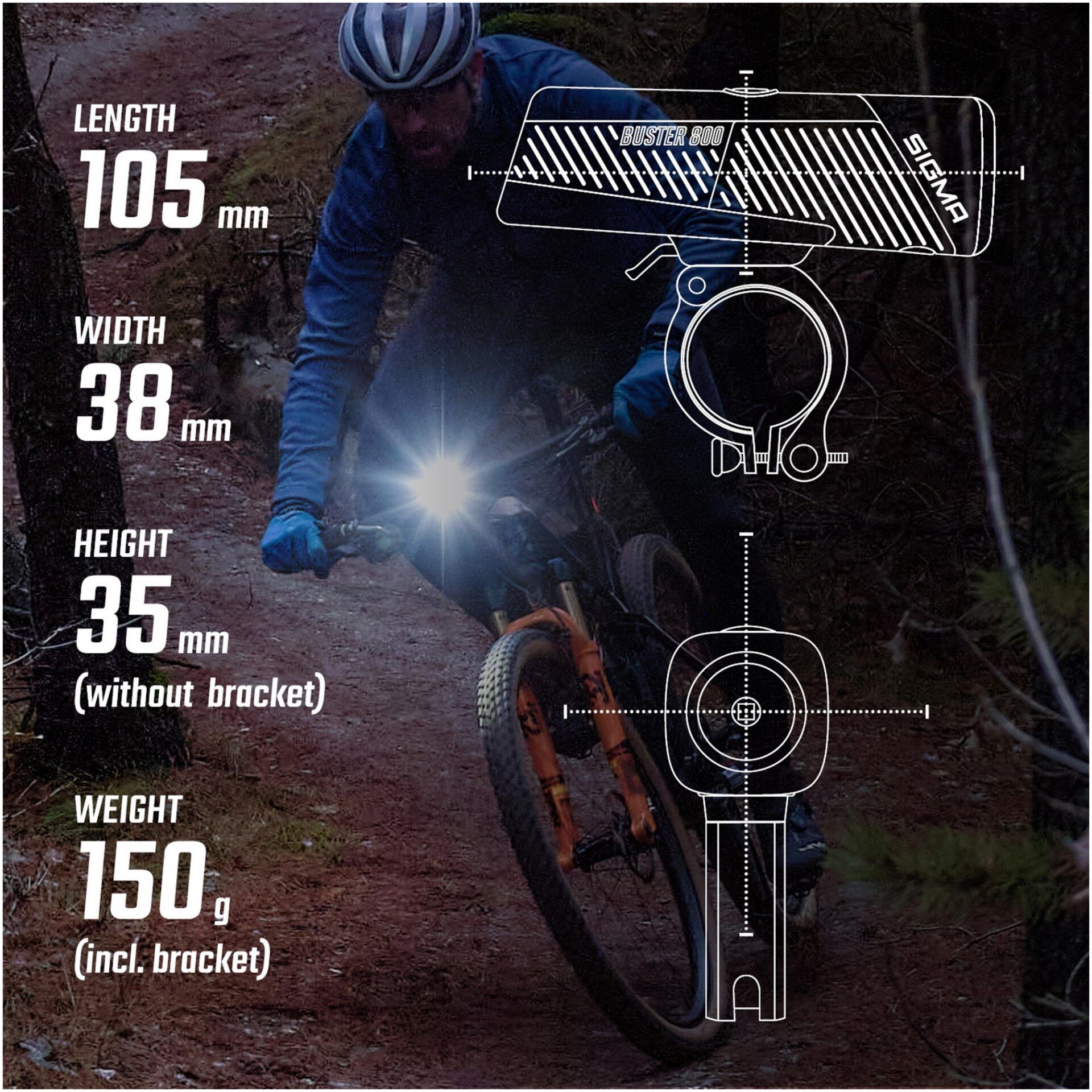 Bright light on dark trails! The Buster 800 headlight means that nothing is keeping you from nocturnal adventures. With 800 lumens providing 170 metres (557 feet) of range - sufficient power even on dark forest trails.