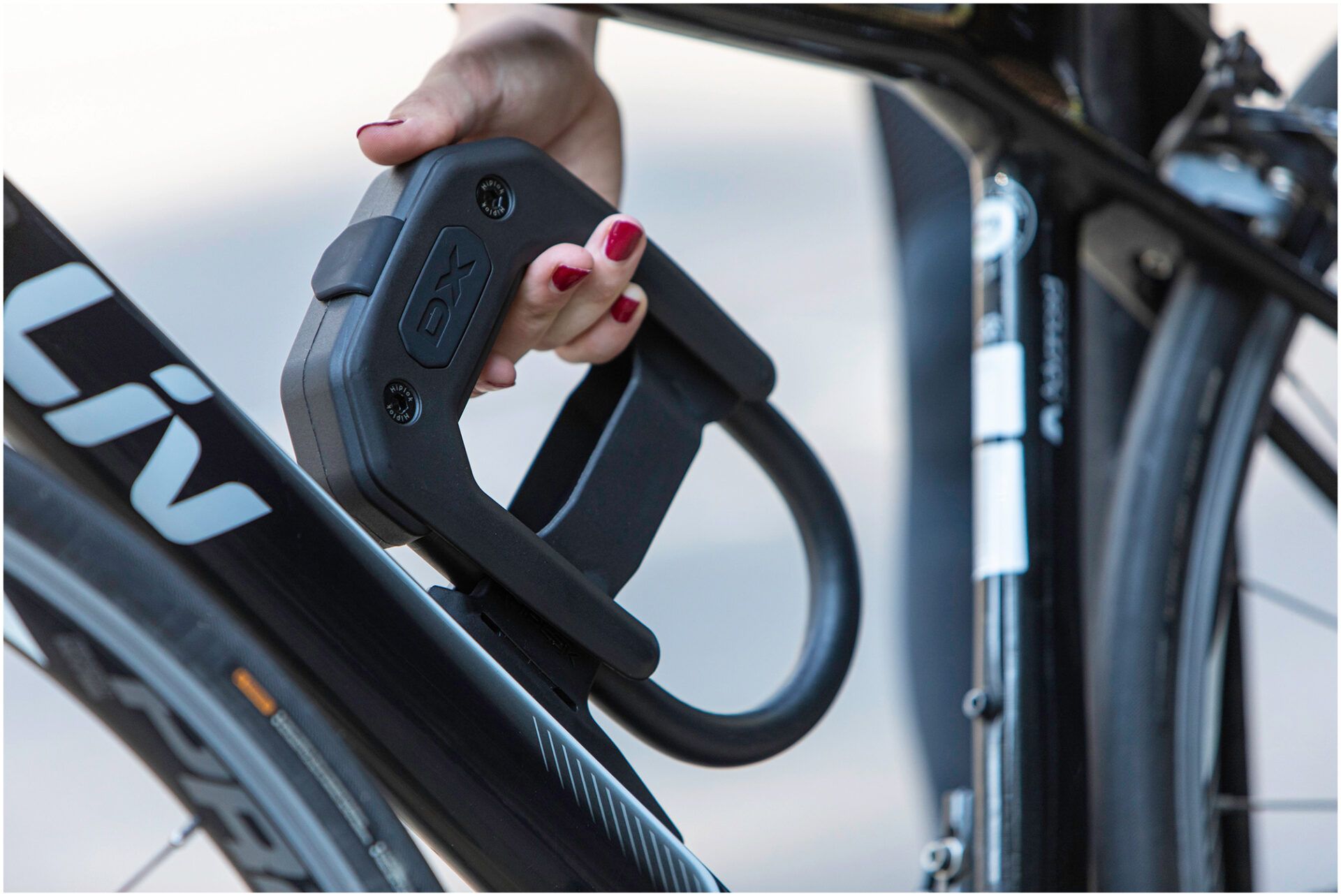 One of the lightest Sold Secure Pedal Cycle Diamond & Sold Secure Powered Cycle Gold rated bike locks. It comes with a patented clip + ride system, the dx clips on to belts and bag straps making it easy to carry on your ride.