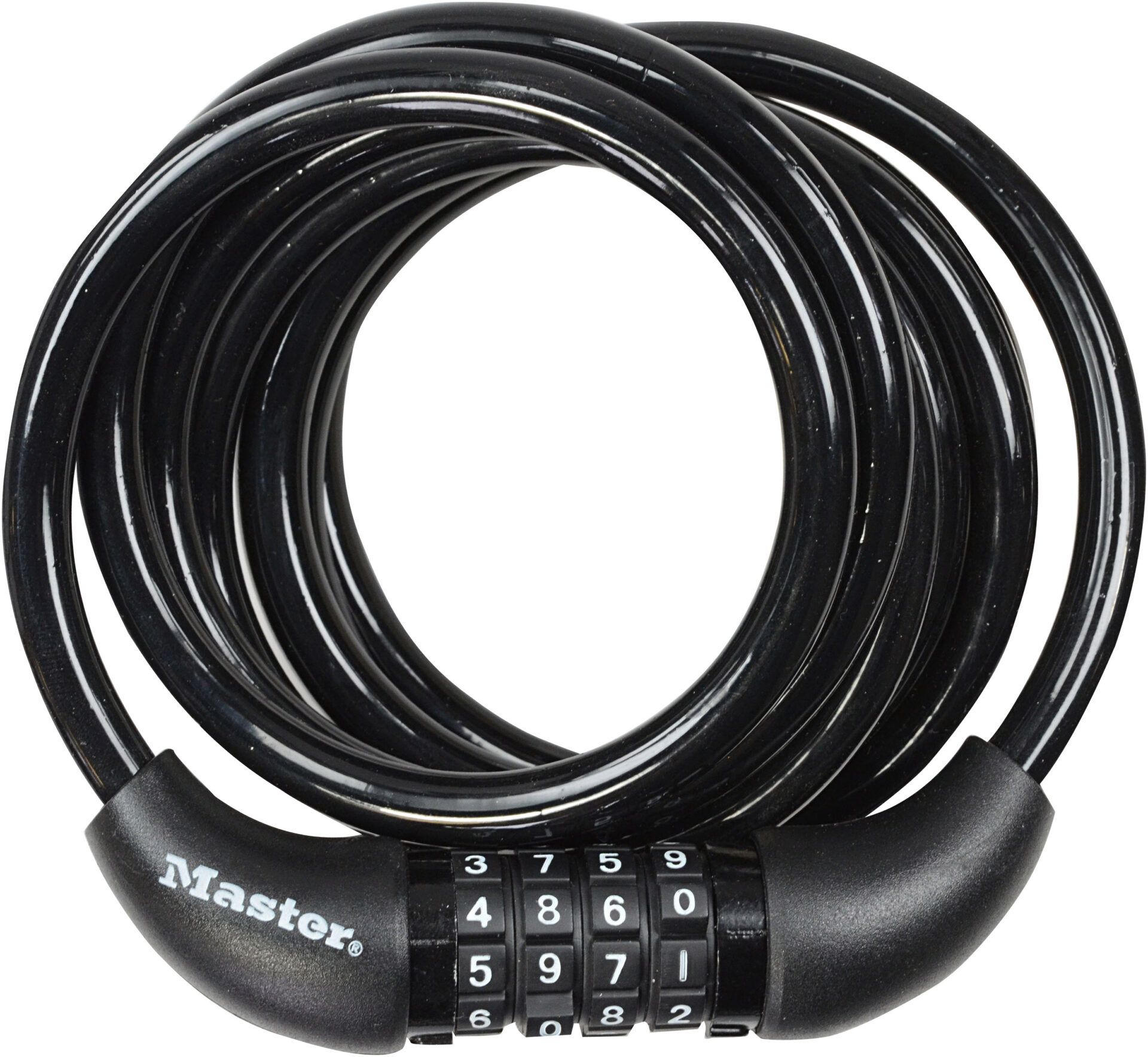 The Master Lock No. 8221EURDPRO Set-Your-Own Combination Cable Lock is 1,8m long and features a 8mm diameter twisted steel for maximum strength and flexibility. The protective vinyl coating protects against scratches. The 4 dial combination security offers keyless convenience. The Limited Lifetime Warranty provides peace of mind from a brand you can trust.