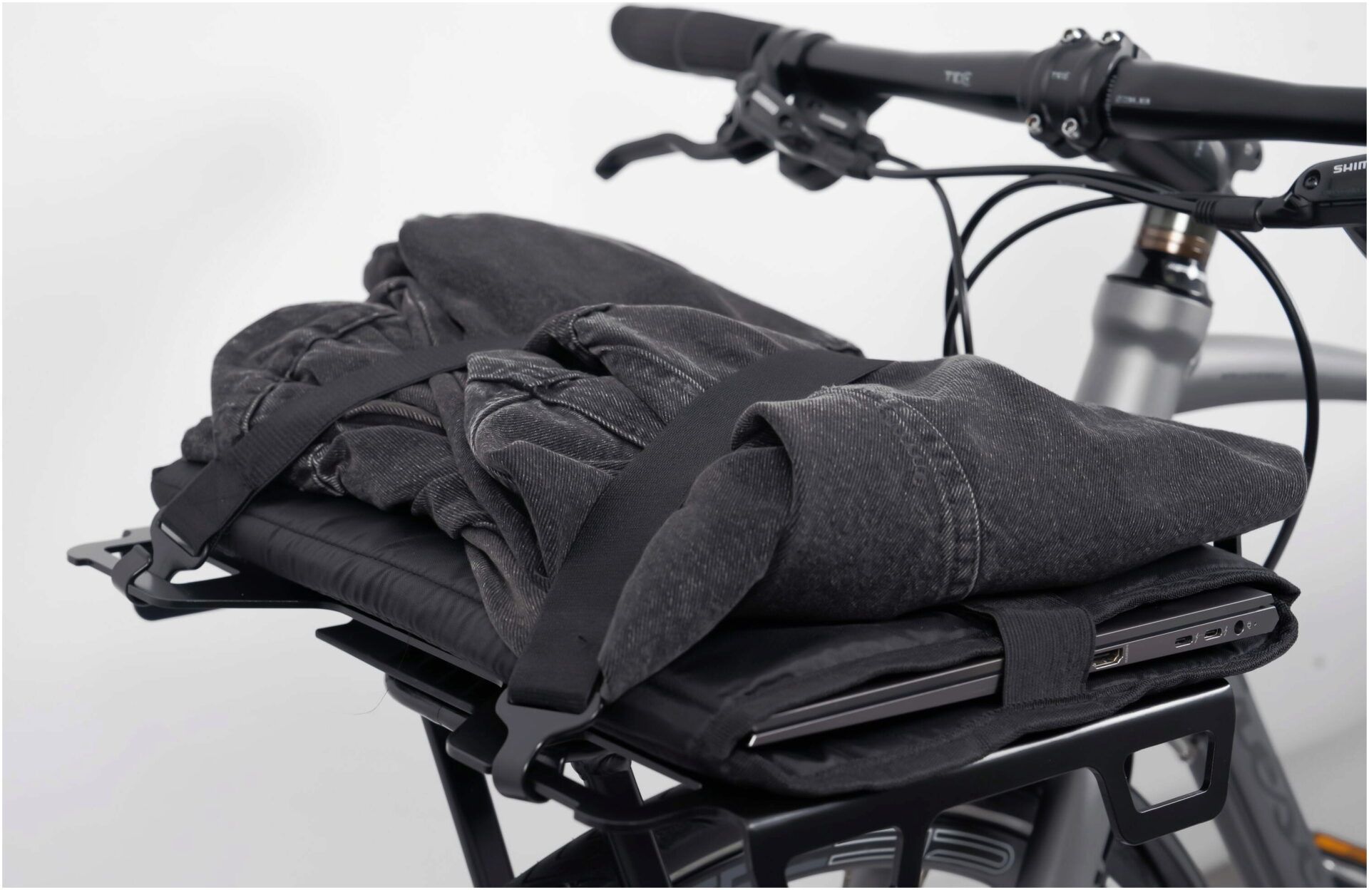 Designed for both front and rear carriers, this holder offers simplicity and compactness, making it perfect for carrying bags, boxes, or other essentials during your ride. The design is as lightweight as possible and allows for easy attachment of bungy cords. Two pieces of Flat Bungy Cord are included.
