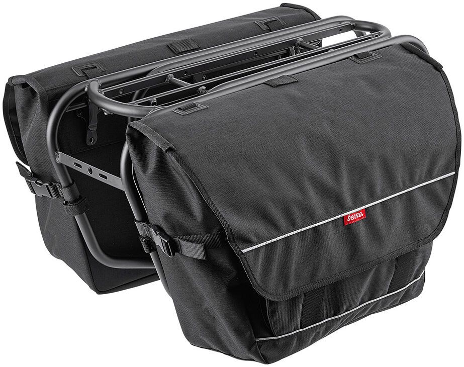 Benno large capacity pannier bags are designed to carry a variety of different loads, big and small. The adjustable strap system lets you secure anything from boxes to oversized items by simply tightening the horizontal and vertical straps. Depending on the size of the item, you can either close the cover or roll it up and fasten it with a Velcro strap to allow extra room for the load to extend out.