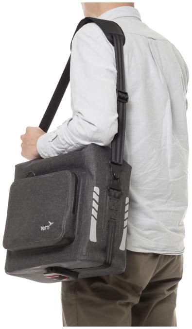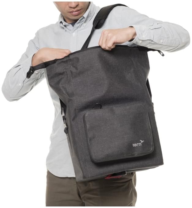 The Dry Goods Bag is built for comfortable all-weather commuting. With KLICKfix mounts, it clips effortlessly on any rear Tern rack, and because all the mounting hardware is tucked away under the bag, it’s a pleasure to carry when you’re off the bike too. It’s sonically welded, 100% waterproof, and holds up to 11.2 L (684 cu in) of gear and groceries.