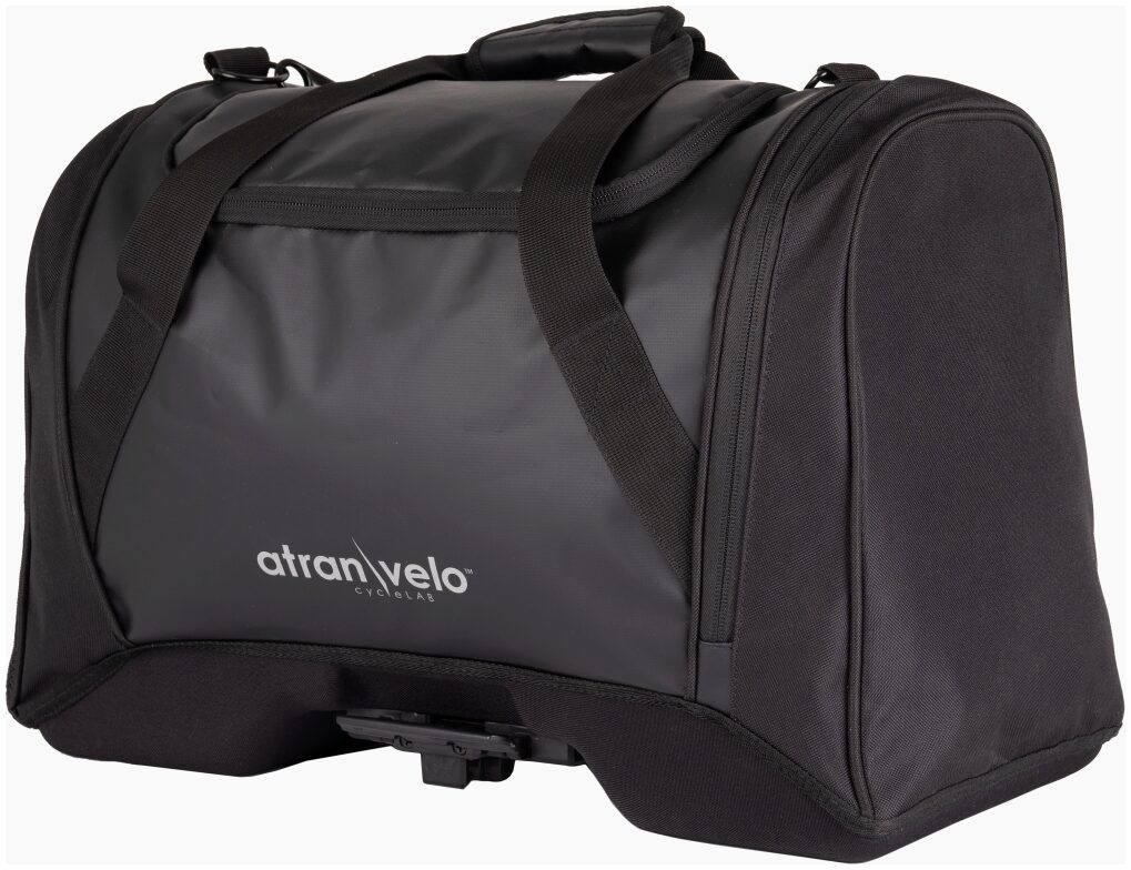 The Pulse Duffle Bag is made to hold it all. Its spacious main compartment offers 36L of storage space and the clever internal mesh and zippered pockets make it easy to keep your water bottle and smaller things organized. It also features a large outside zippered pocket for your shoes or dirty gear. The Pulse’s detachable shoulder strap, water-resistant coating, and AVS integration make it the ideal companion for all your on-the-go needs. Attach it to your bike or throw it over your shoulder.