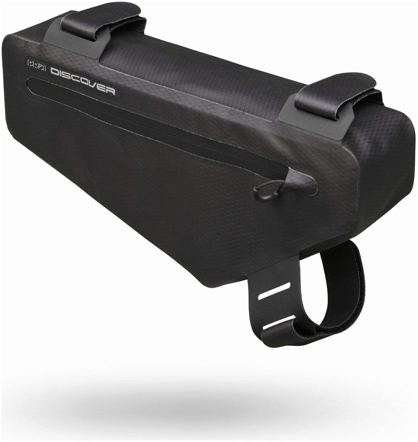 Discover the freedom of bikepacking with the PRO Discover Team Compact Frame Bag. It is the perfect bag for overnight trips or for touring cyclists who enjoy travelling ultra-light. Intended to be used on shorter trips it boasts a 2.7L capacity and thanks to its broad Velcro straps is compatible with most bicycle frames, depending on rear suspension layout and bottle cage location. The Discover Team Compact Frame Bag, is constructed from waterproof material and features waterproof welded seams to keep your valuables dry on bikepacking adventures.
