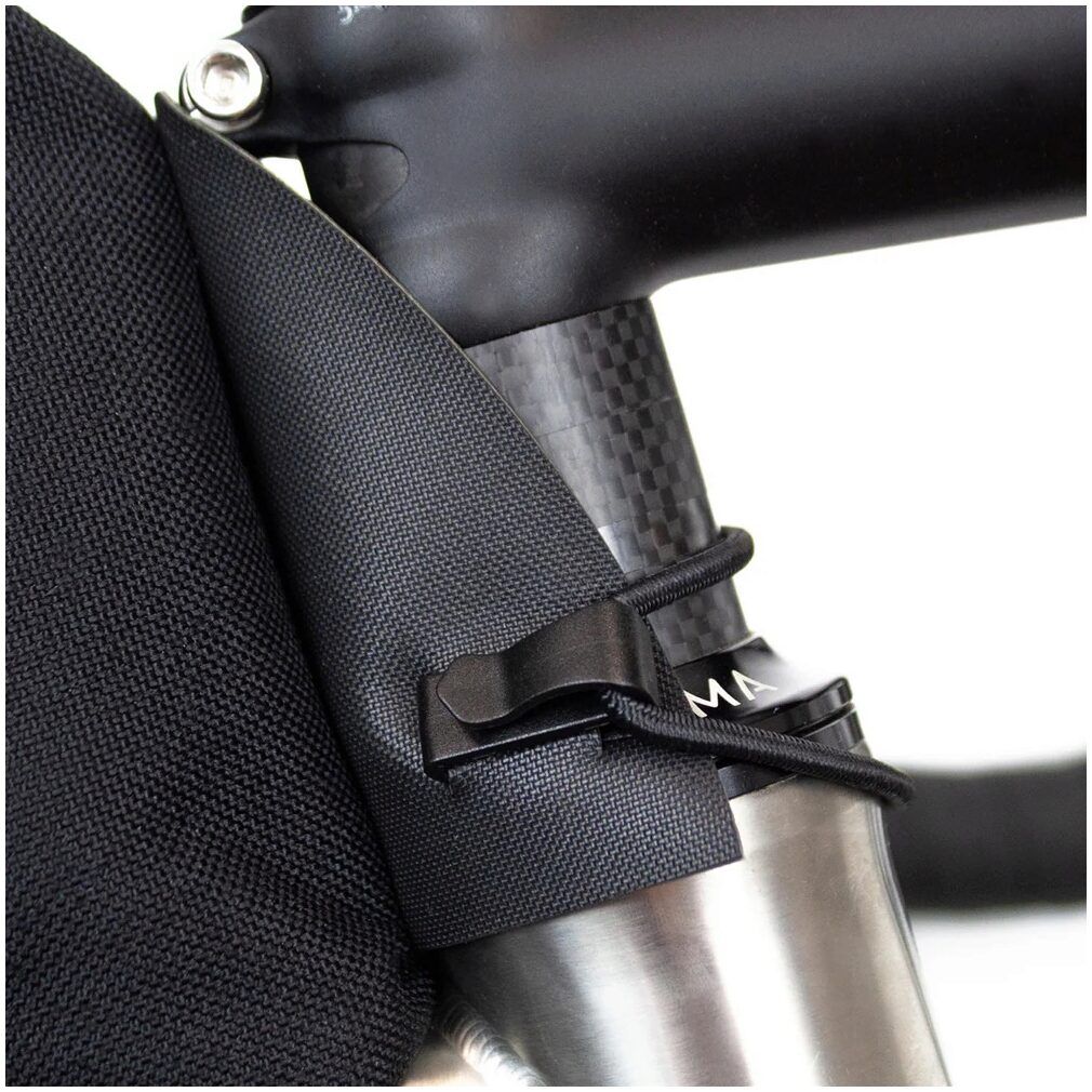 The headset fitting is designed to work with all headsets, including bikes with a low stack height. The sturdy plastic base has reinforced holes to allow it to fix onto the top tube bolt bosses, eliminating the need for straps and keeping the bag secure.