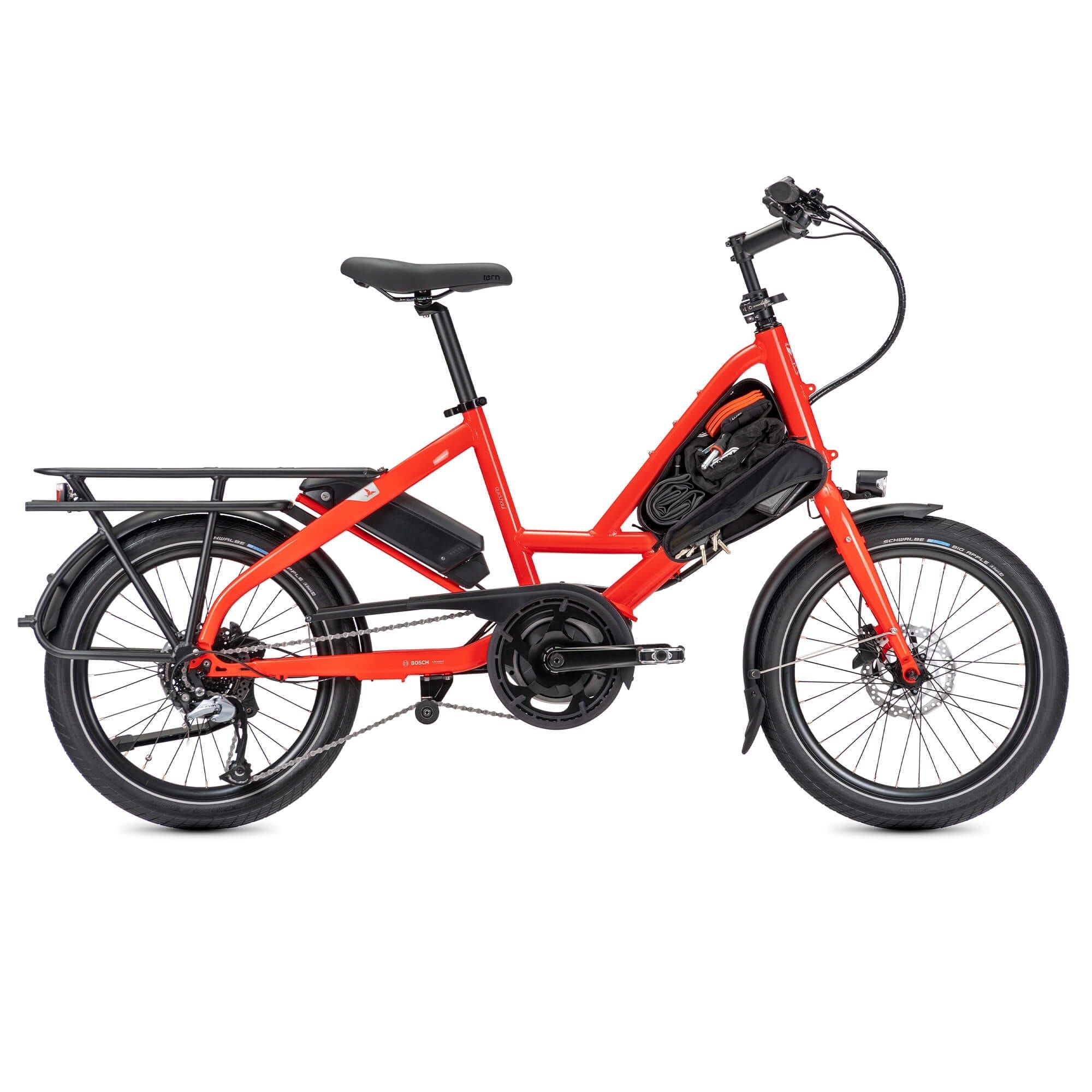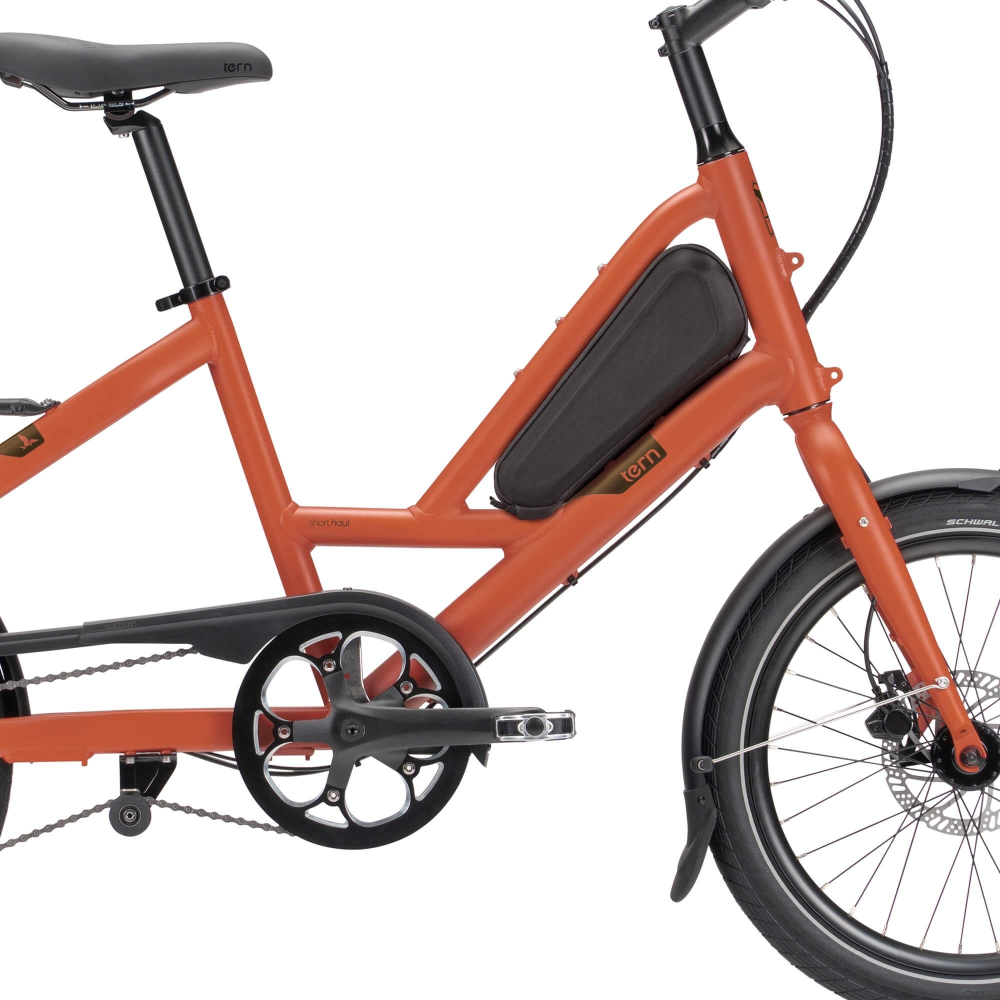 The Tern Glovebox is a sleek water-resistant carrying case that fits perfectly between the top and down tubes of the Quick Haul and Short Haul. The Glovebox adds no bulk to your bike yet offers plenty of room for all the stuff you need to take on every ride—like your wallet and keys, flat tire emergency kit, and chain or folding lock. And like your car's glovebox, the Tern Glovebox is easy to reach from the driver's seat, so your essentials are always at hand.
