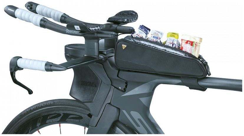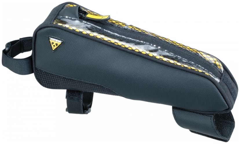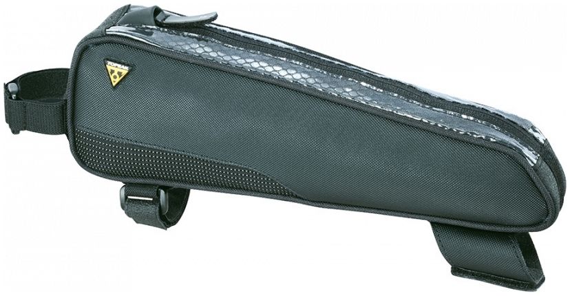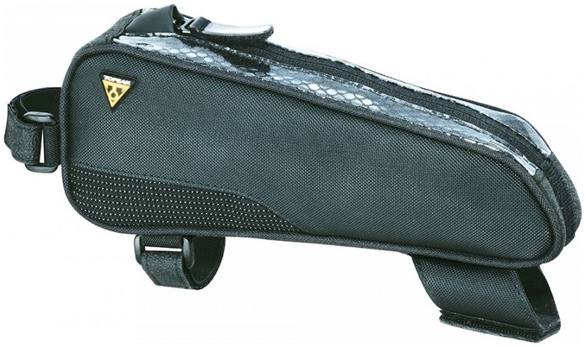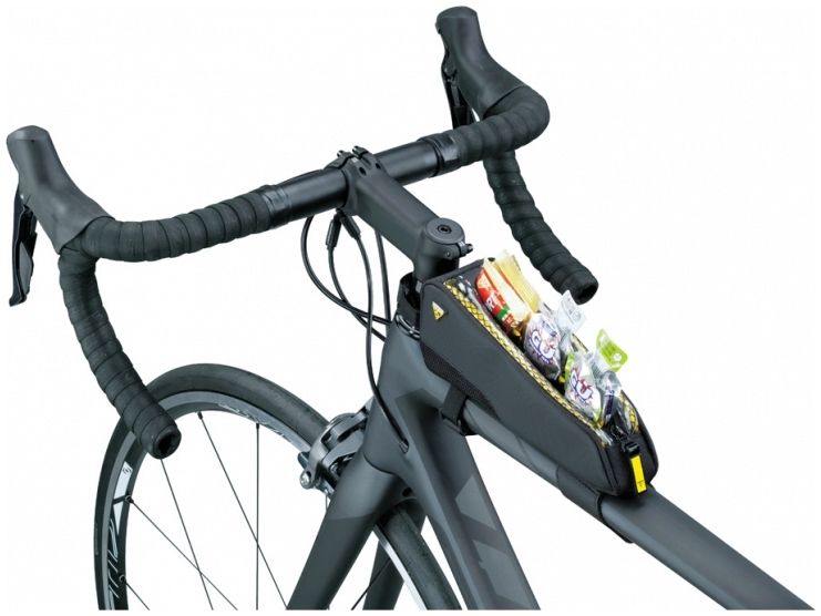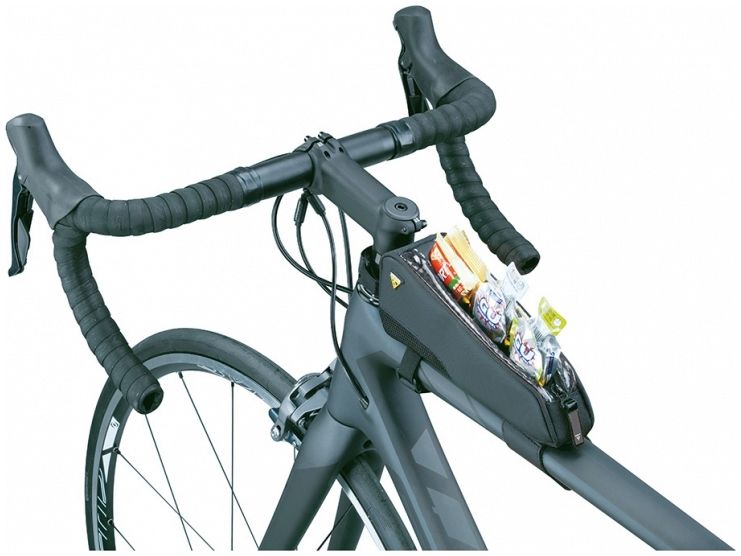 Stylish slim top tube mounted bag giving cyclists quick and easy access to energy bars, smartphone, wallet, tools or any small essential gear they need close at hand.