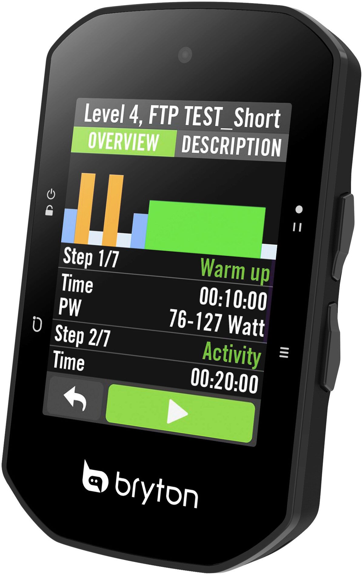 With a new graphical workout overview with zoom support and advanced new features, including real-time intensity adjustment, TrainingPeaks support, a new resilience workout mode and workout note features (to add notes from the Bryton Active app or TrainingPeaks), trainings on the Rider S500 just got even better! View remaining workout progress, customizable power zones on the target power page and more, all with vivid graphical representation!