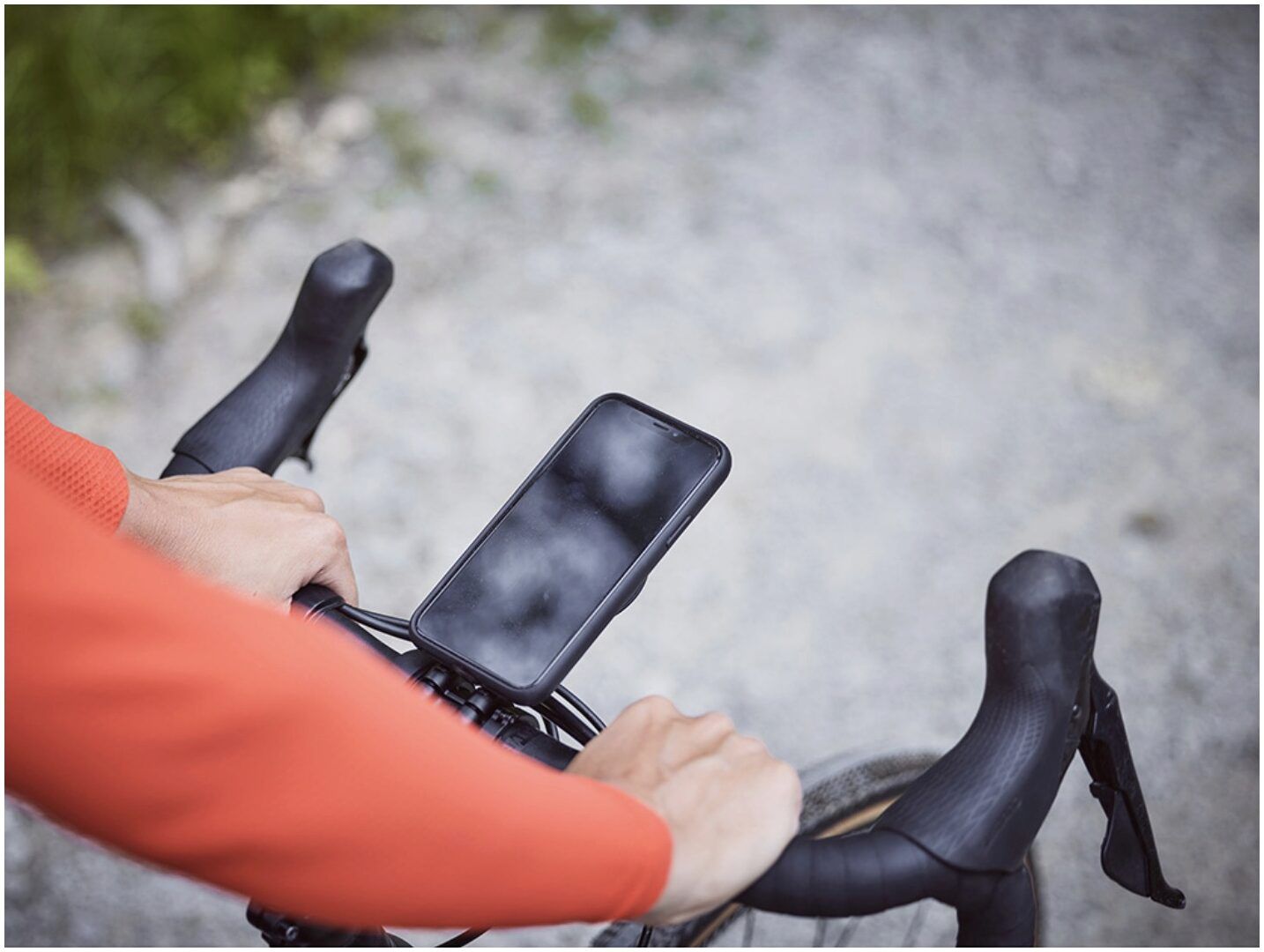 The phone mounting system consists of a base (available for various applications) and a special, ultra-thin smartphone case or a universal patch with an embedded geometry.