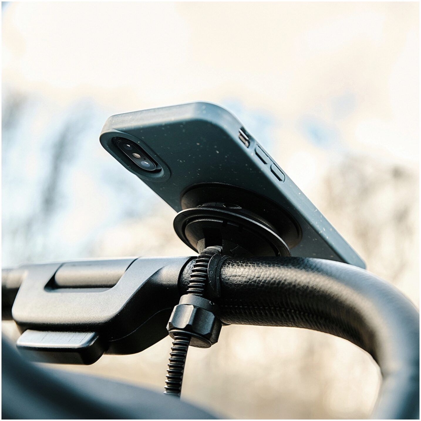 The Vacuum handlebar base flex offers a brilliantly simple solution for anyone who wants to keep their smartphone securely in view while cycling. Thanks to the combination of magnetic force and suction, the device stays firmly attached to the handlebars, yet can be easily operated, released, and re-secured with just one hand.