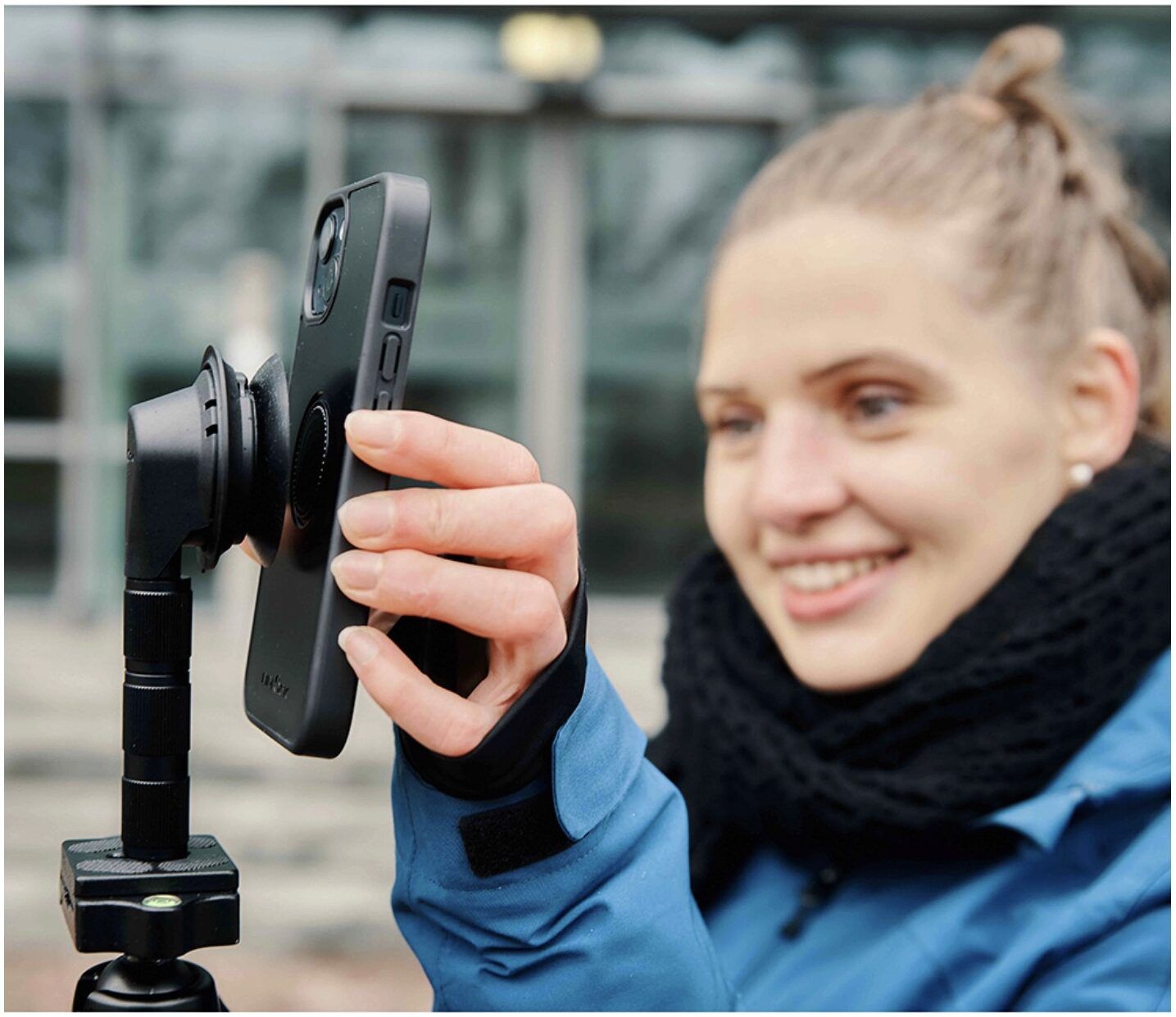 If you want to leave the big camera at home, the mobile phone in combination with the Vacuum screw base and your favourite tripod offers a flexible and practical alternative. The screw base is composed of three individual spacer that can be screwed together depending on the desired height. Cold shoe and Vacuum head are included in the delivery.