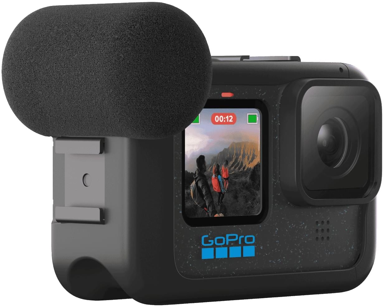 Designed for vlogging, live streaming and near limitless expansion—Media Mod transforms your HERO camera into a production powerhouse. It features a built-in directional mic for enhanced voice capture, 3.5mm mic port, HDMI-out for playback on external monitors, plus two cold-shoe mounts for lights, LCD screens or additional mics. Built tough and weather-resistant, even the wind is no match for this mod. The removable foam mic cover suppresses wind gust up to 20 mph (32 kph).