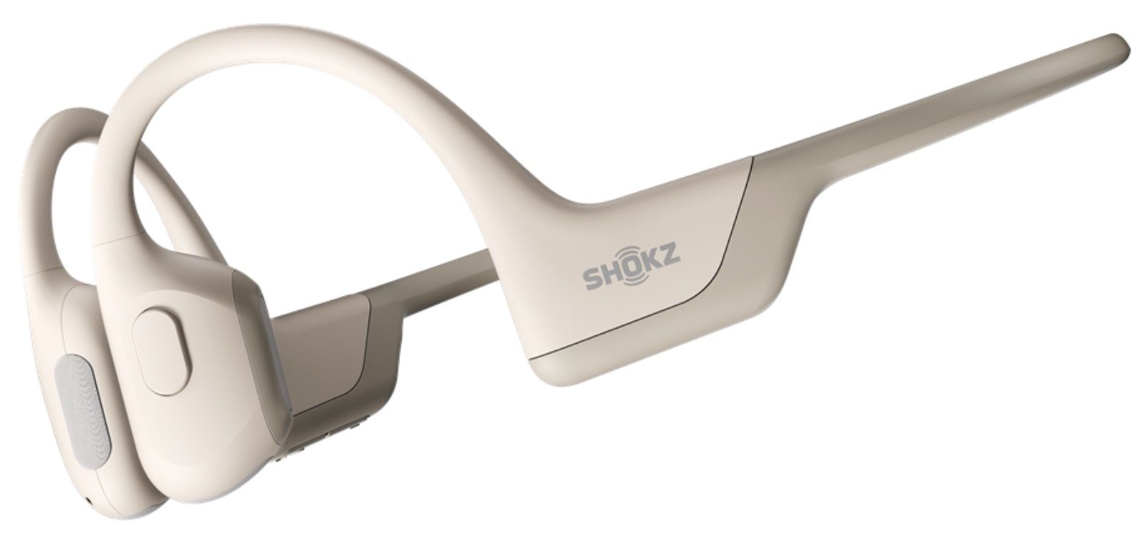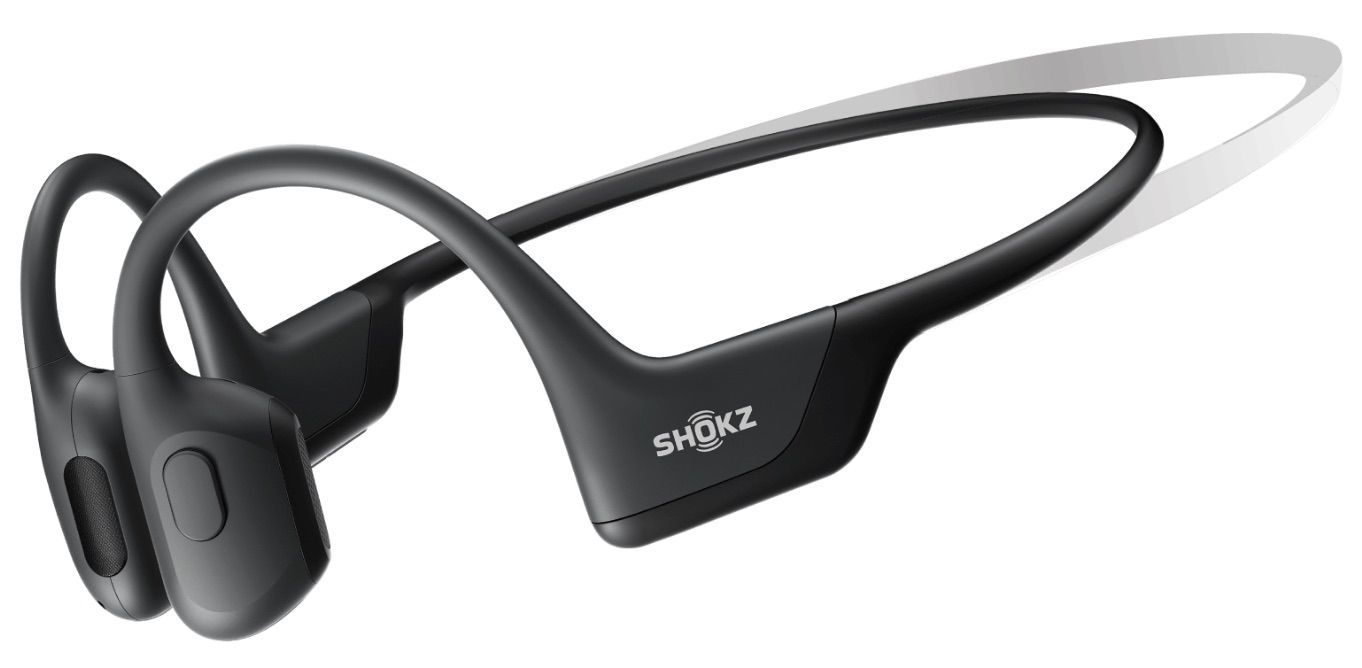 Shokz headphones use bone conduction technology to send sound waves through your cheekbones directly to your inner ear, leaving your ear canal open. A lightweight band goes around the back of your head and ear hooks rest lightly on the tops of your ears to place the transducers on your cheekbones just in front of your ears, ensuring a comfortable fit.