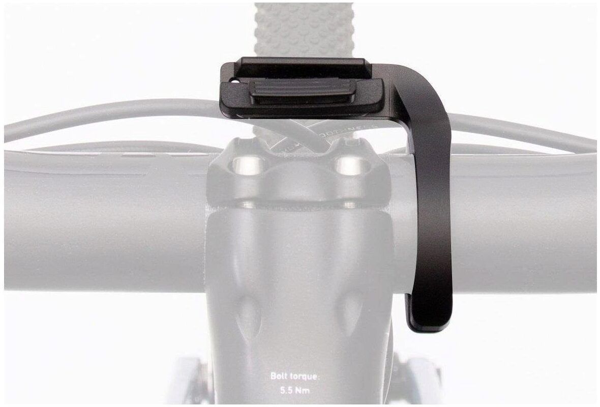 The Stages Dash Out Front Mount clamps to 31.8mm bars on the right of your stem, holding your Stages Dash L50, M50 or L10 Computer level with the bars and in front of the stem.
