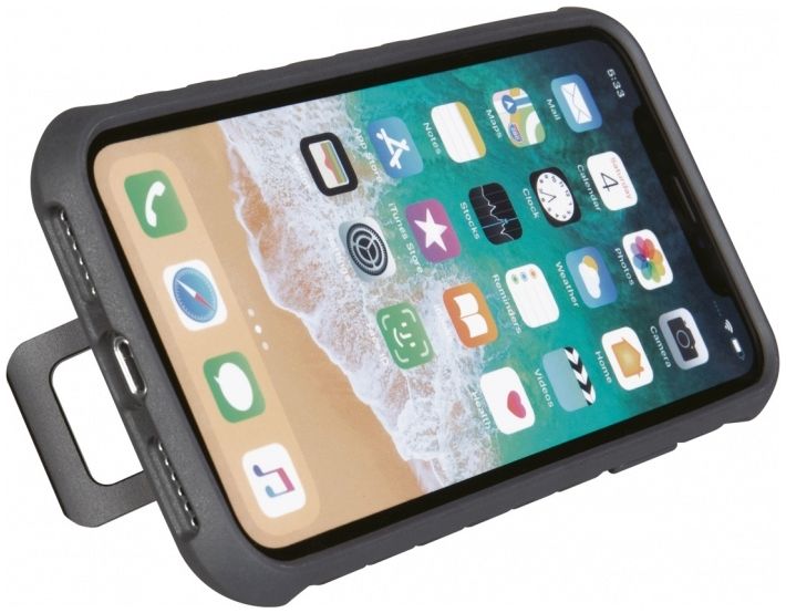 The RideCase for iPhone has a scratch resistant, dual density, non-slip, high-grade engineering polymer / rubber exoskeleton for shock and impact protection that securely holds your phone while on the go. Its unique and full angle adjustable mount allows viewing in landscape or portrait orientation and lets you mount or remove the RideCase in seconds. An integrated flip stand allows for easy viewing off your bike and is compatible with wireless charging.
