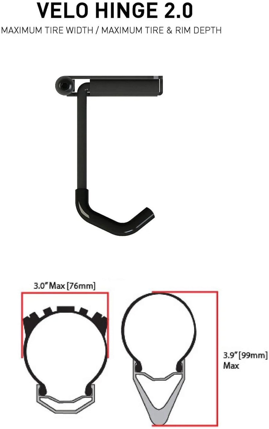 This elegant solution of caring for your bike while maximising your storage space is now stronger and more versatile than ever. The Velo Hinge 2.0 has been updated with a stiffer, stronger body and a longer wheel hook with a slight upward angle, enabling it to accommodate wider wheels and tyres.