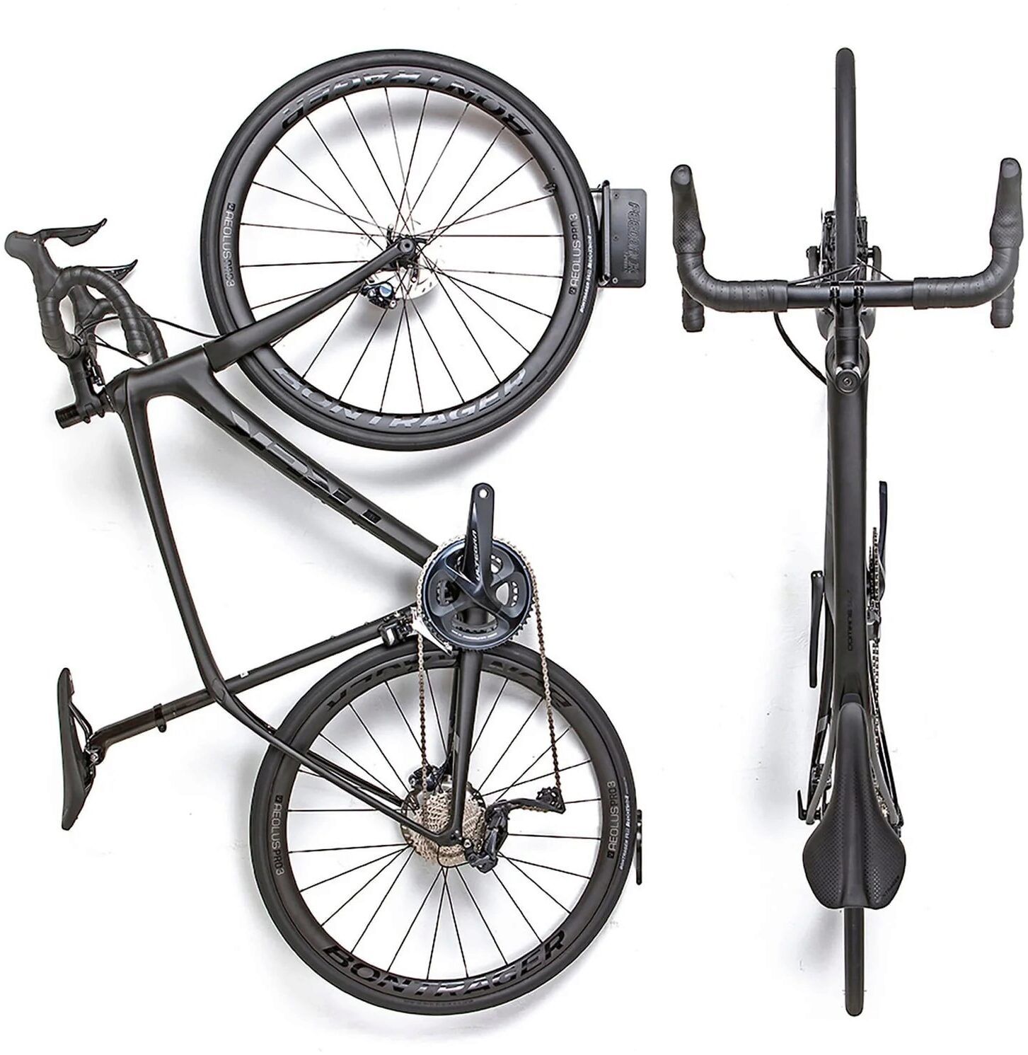 - Front wheel hook mounts to any standard wall stud