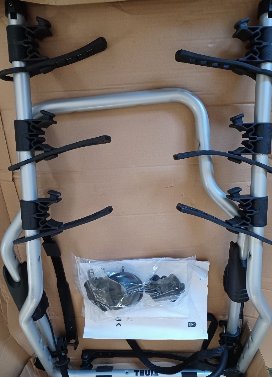 Thule lightweight tubular 3 bike rack optimised for estate cars. Installs in minutes and holds secure with no movement. Contact points on the bike and vehicle are protected by rubber coating, and the rear door can be opened with the rack still attached, even with bikes fitted. Also folds down to store easily in the car or at home when not in use.