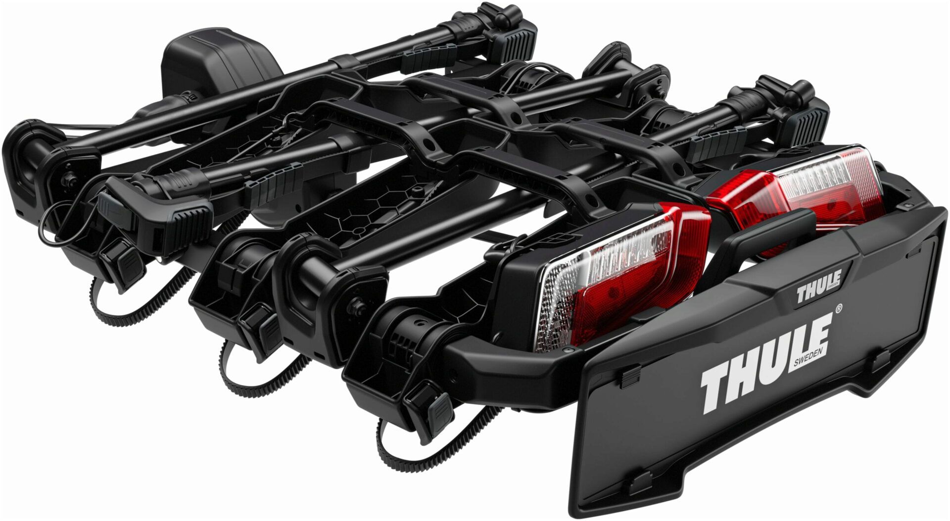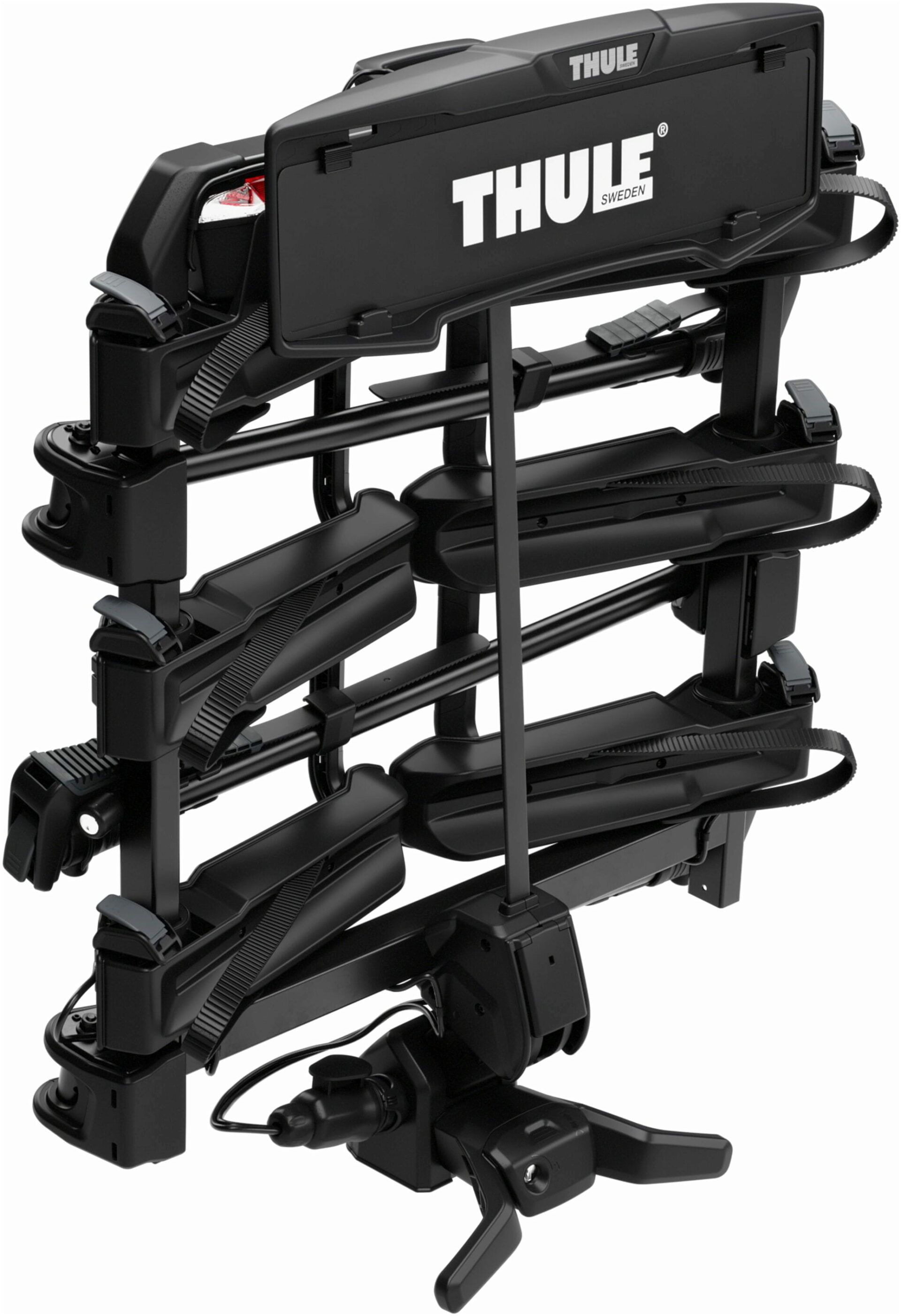 With the capability to transport up to two and three bikes and a special tilt-up function, Thule OutPace reduces its footprint when parked, minimizing the risk of damage. The integrated lamps ensure visibility and safety.
