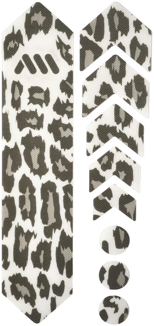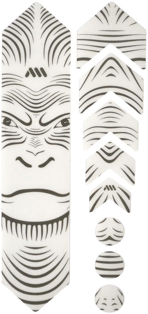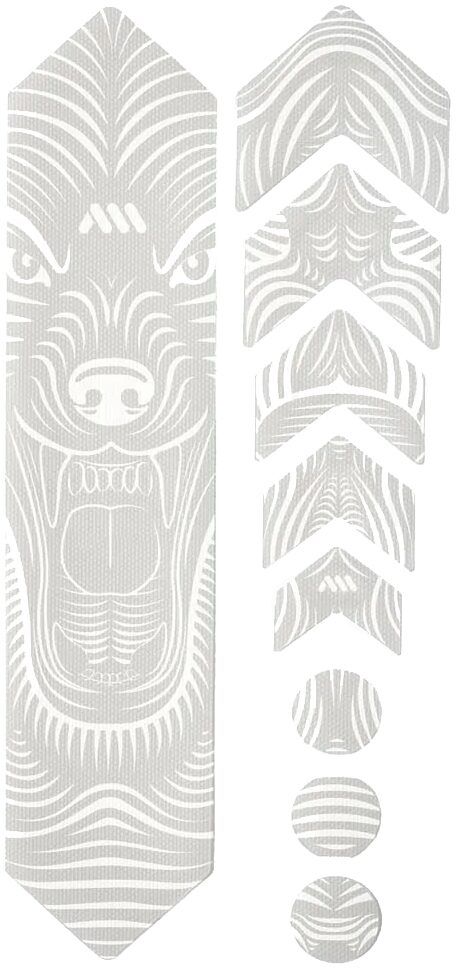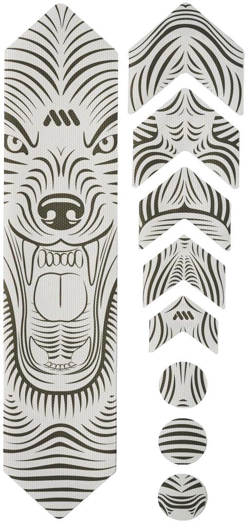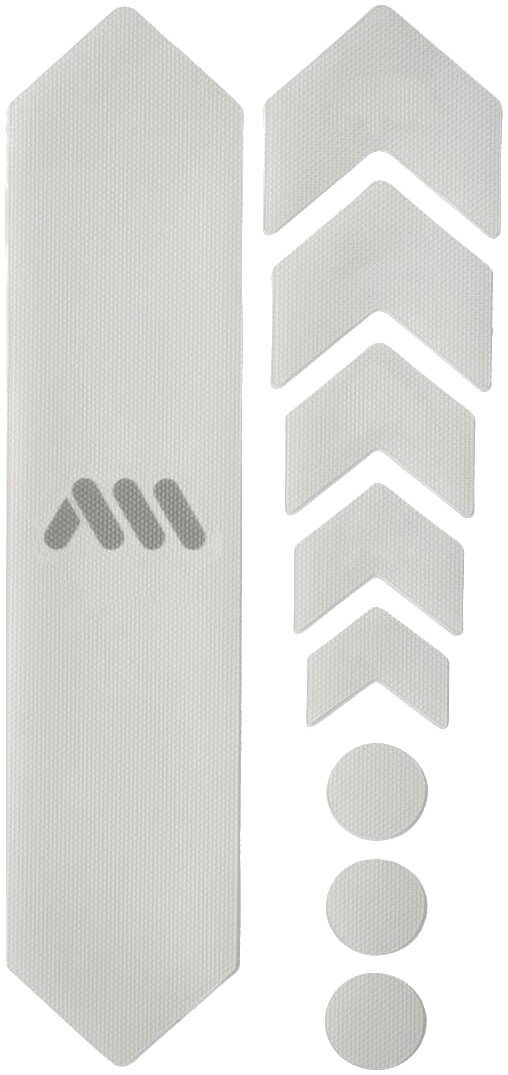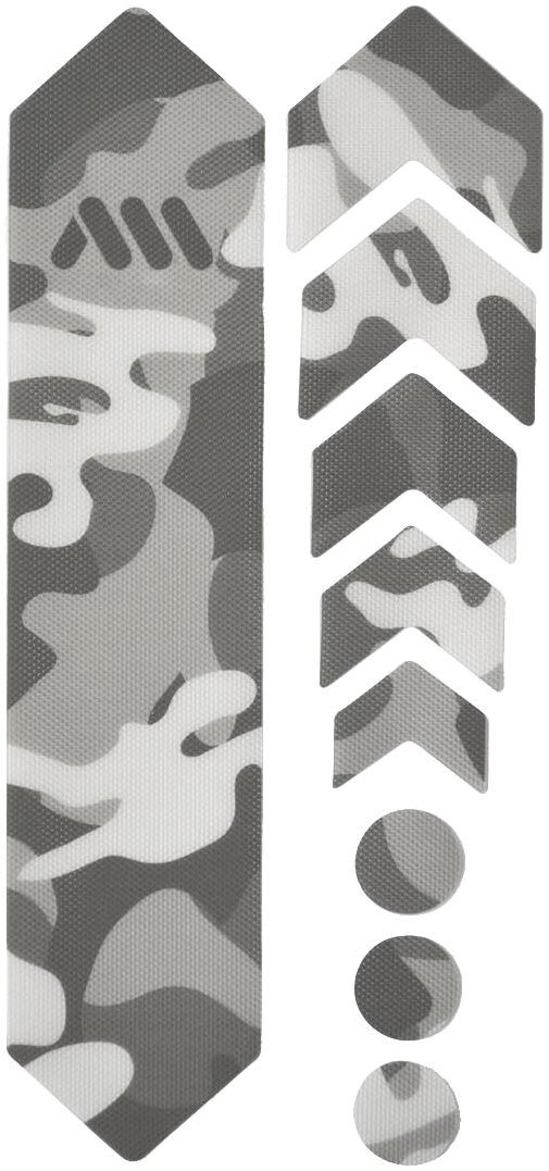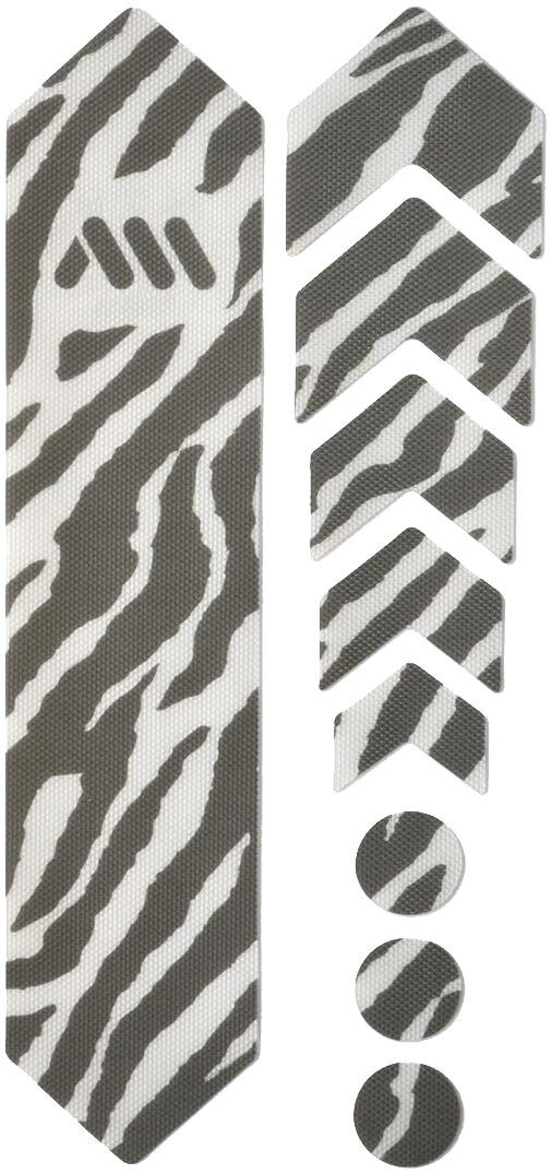 - 9 parts for a universal protection system: 1 big part for the down tube, 5 arrow parts for extending protection on down tube, chainstay, or top tube, and 3 circles for cable wear protection