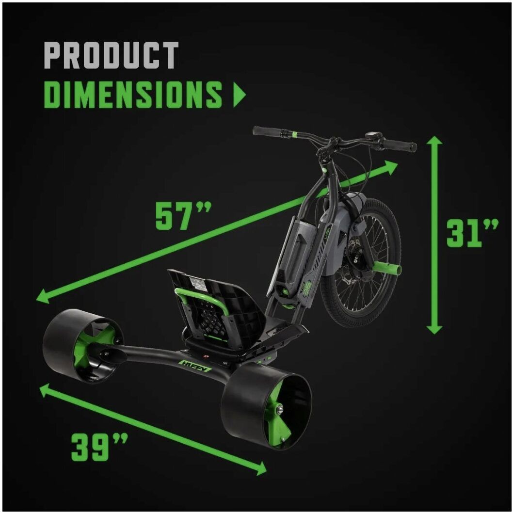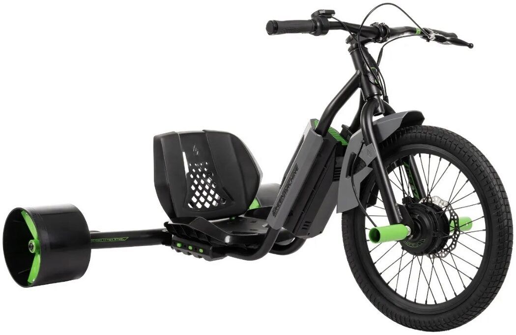 Get ready for a high-velocity adventure like no other on the first-ever electric Green Machine from Huffy! This powerhouse drift-trike is packed with a 250-watt motor that lets you reach speeds of up to 15mph! Remember the excitement of the classic Green Machine? Now, imagine reliving those unforgettable moments with a high-octane twist. Green Machine's Electric Green MachineTM combines nostalgia with 36 Volts of electric power, giving you the best of both worlds.