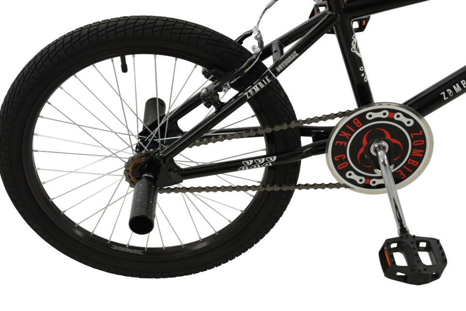 - High-rise BMX handle bars, straight blade forks and matching full colour ‘Zombie’ branded saddle. Soft-touch handle bar grips with flex contours and oversized flanges for full control and comfort.