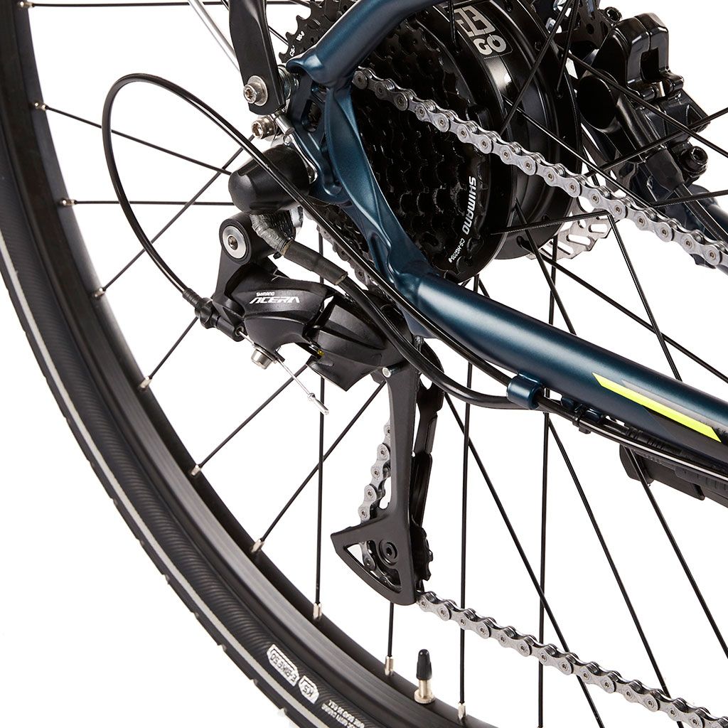 This year we have really upgraded this e-bike. Along with all the benefits from 2020, a new sleak mudguard and carrier combination along with hydraulic disc brakes really make this e-bike the perfect all-round riding companion. Featuring our latest integrated design, the 400Wh battery will keep you going for a good 40 miles, especially when coupled with this e-bike’s 9 speed gears and large 11-34T cassette.