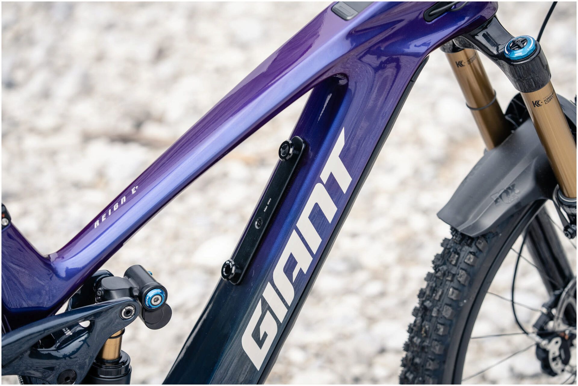 Everything about the new Reign Advanced E+ is designed to make it the best descending E-MTB ever. From the bottomless feeling Maestro suspension with 170mm of rear travel (and a 180mm fork) to the punchy new SyncDrive Pro 3 motor and its lightweight, stiff and ultra-adjustable composite frame. Giant added a titanium skid plate, robust frame protection, and an innovative bash-guard with an elastomer damper-so you can send it with confidence on the most rugged, technical terrain.