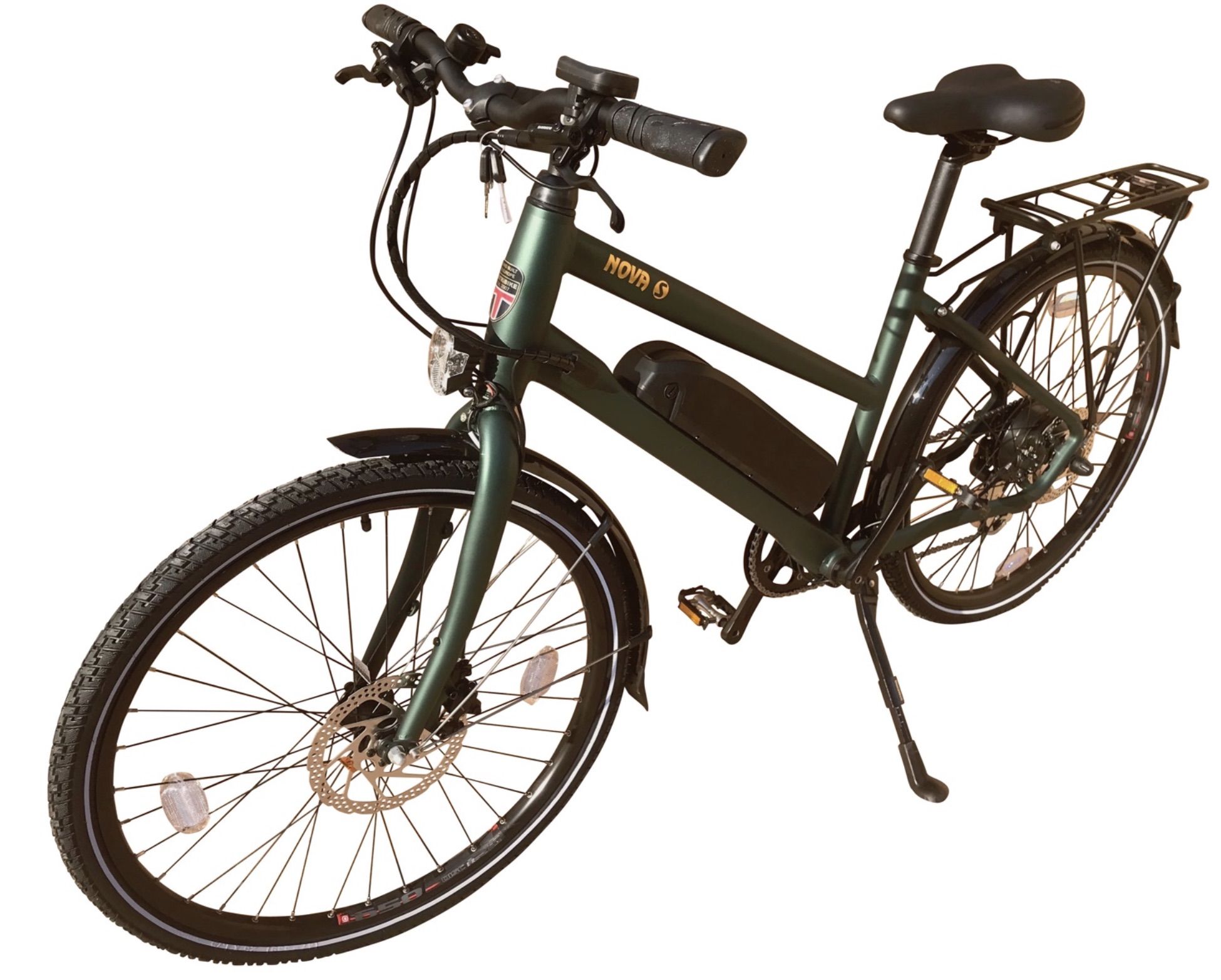 Fitted with traditional 26” wheels the Nova is comfortable and versatile ride for town or countryside. The Nova-S has a step-over frame and is available in an attractive matt green.