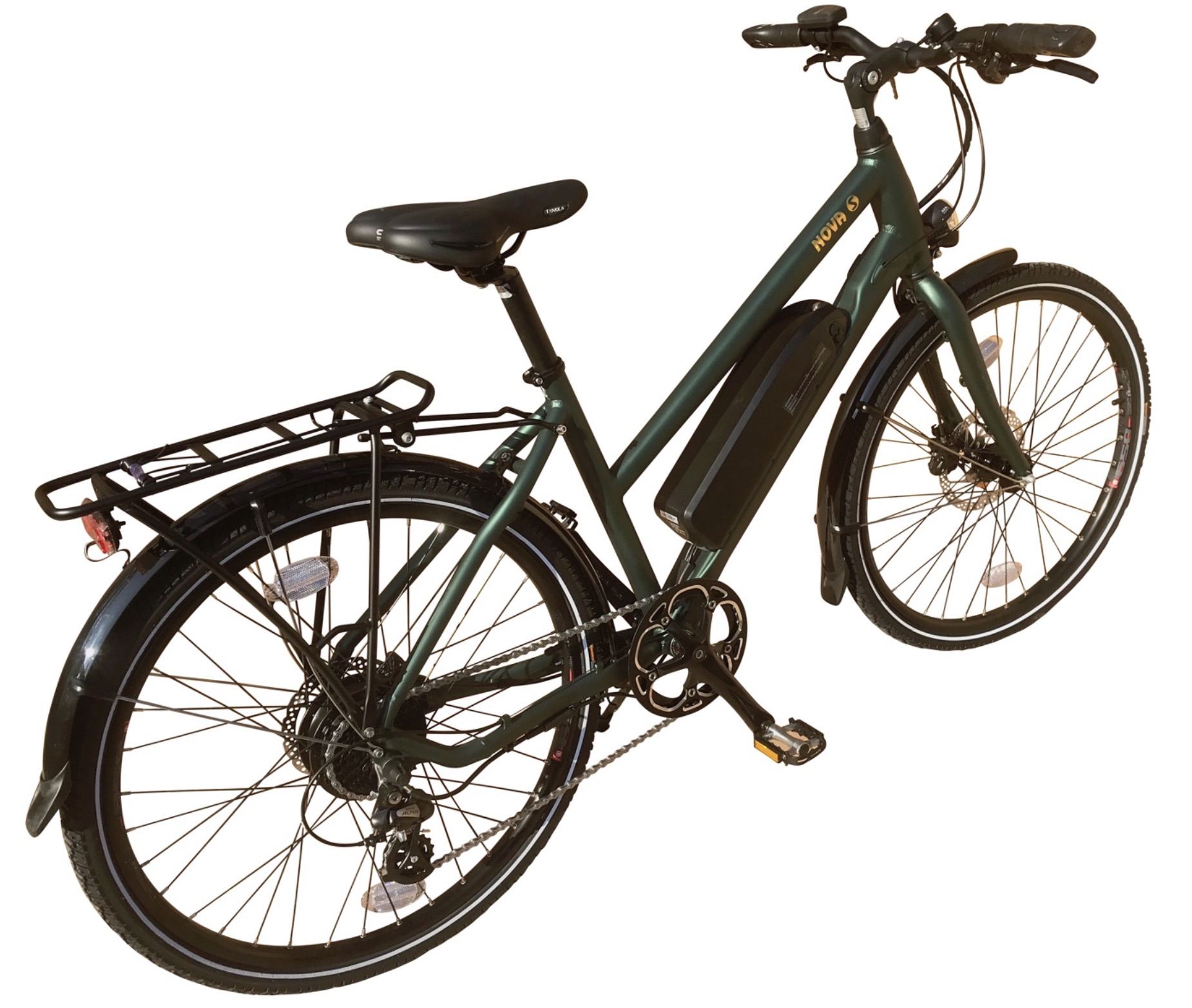 The Nova is available in a choice of two frame styles The Nova-S has a step-over trapeze style frame in green and the Nova-X is a crossbar in gloss white. Available in a choice of three battery capacities to suit your riding requirements. The Nova is a great everyday electric bike for leisure or commuting.