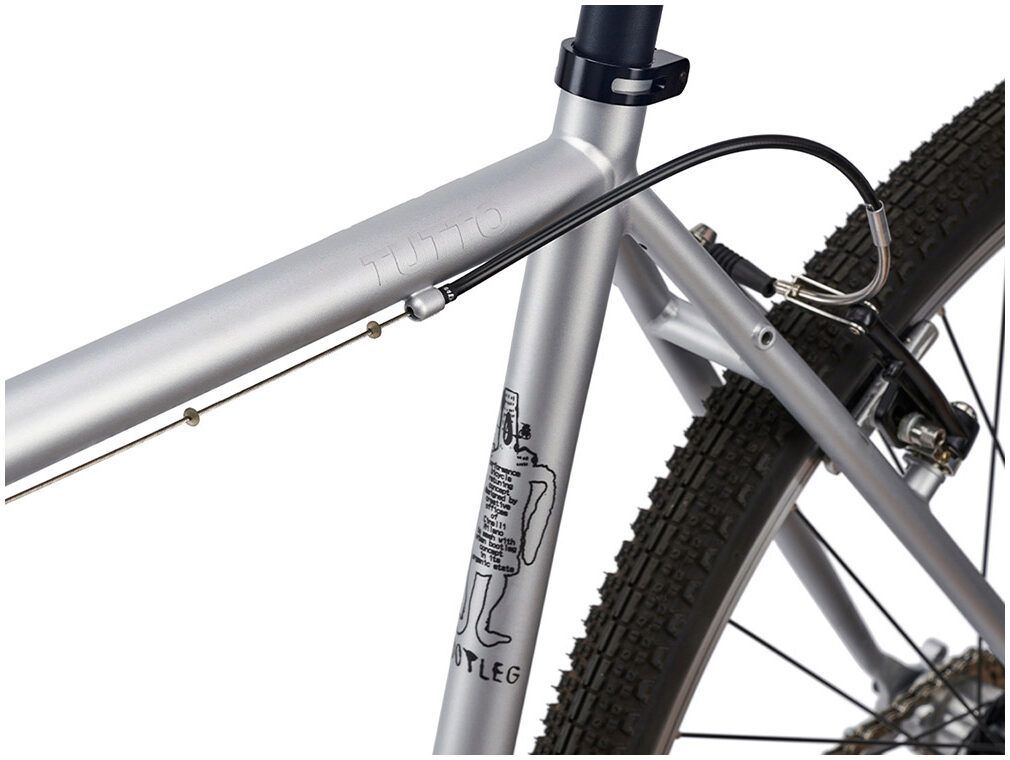 Made with butted steel tubes, the Tutto has been designed to be able to mount a rear derailleur and a modern road race wheel. A vintage MTB-style segmented TIG welded fork improves rigidity as well as the overall aggressive street-ready aesthetic of the bike and is complemented by the new Silver Bootleg graphic concept including reflective details and 3D decals.