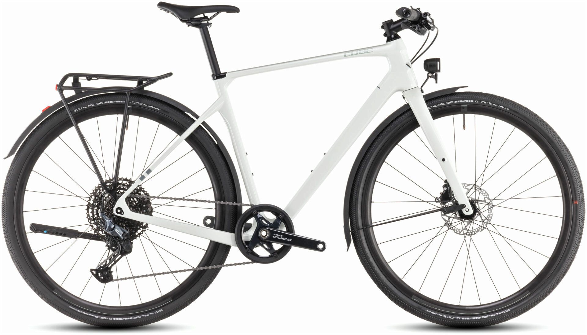 Fast and light can be tough and versatile too, and here's the proof: the Nulane C:62 SLX FE. With its full equipment package including mudguards, luggage carrier, lighting set and kickstand, it's ready to go for weekend touring or weekday commuting... or both. The C:62 frame and full carbon fork are light, comfortable and responsive. And the reliable Shimano Cues 1 x 11 gears, grippy Schwalbe tyres and powerful Shimano hydraulic disc brakes are all you need to tackle any route, whether it's on gravel or on tarmac.