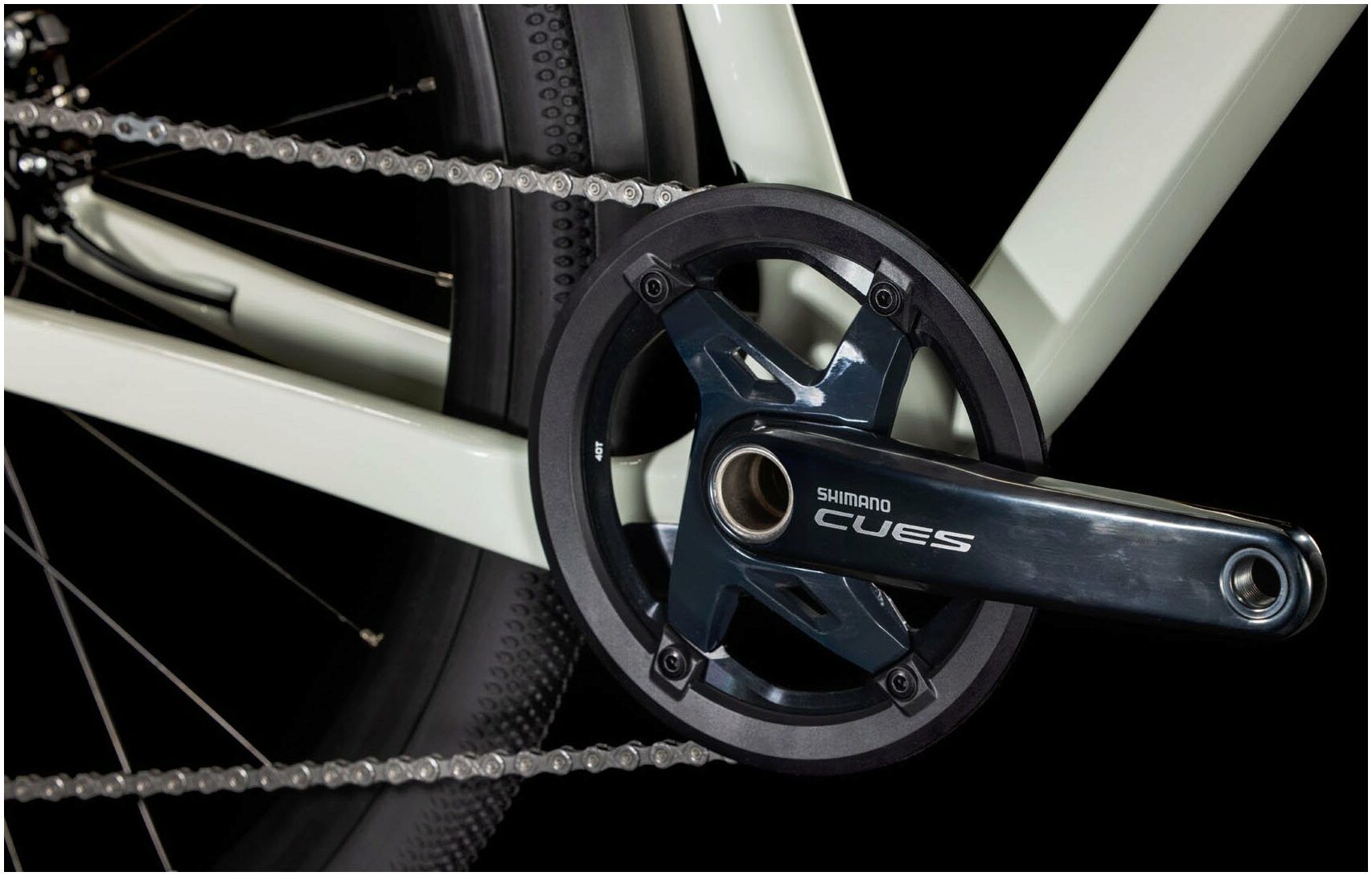 - Crankset: Shimano Cues FC-U8, 44 Tooth