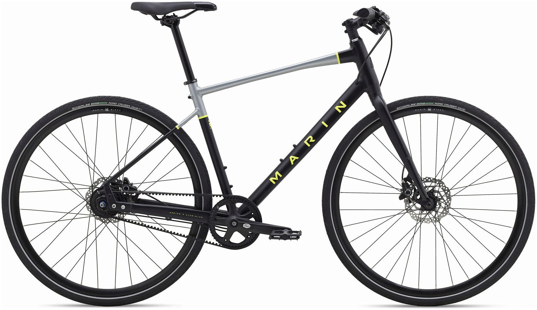 - Frame: Series 3 Commute, 6061 Aluminum, 700C Wheels, Sliding Dropouts, Internal Cable Routing, Belt Drive Compatible, Flat-Mount Disc, Fender, Rack, and Integrated Kickstand Mounts