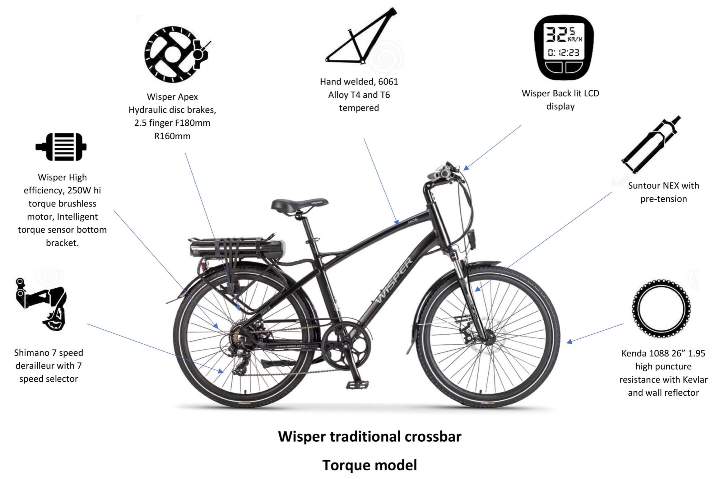 The new Wisper Hybrid Torque drive system is designed to deliver maximum power to the bike’s rear wheel smoothly, quietly and efficiently.