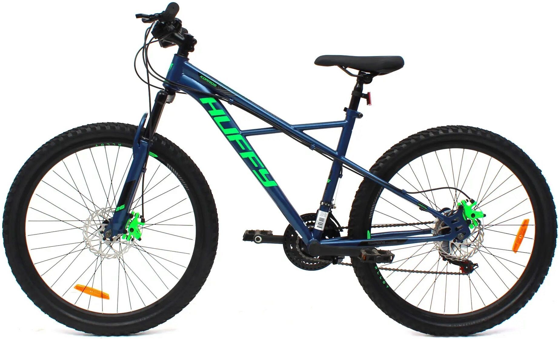 The completely new X-frame design of the Huffy Korros is the perfect mountain bike for men with 21 Shimano gears and 26" alloy wheels. Deviating from the familiar paths is an exciting experience for every cyclist. The Huffy Korros is a bicycle that is suitable for difficult terrains and trails. Suitable for teenagers to adults, with 26" wheels and 43 cm (medium) steel frame for cyclists from approximately +13 years to adults taller than 153 cm. Thanks to the 21 TZ500 Shimano gears, pedaling is a piece of cake during climbs or when you want to increase your speed on paths and trails. The Shimano TS39 Thumb Tap shifting function allows you to quickly and accurately select a gear. During descents you can brake powerfully and reliably with the dual mechanical disc brakes with 160 mm rotor at the front and 140 mm rotor at the rear braking power for most cycle paths. The new Korros series is made for regular cycling tours but also for rougher terrain and trails. Thanks to the suspension fork, the Korros can handle rougher surfaces perfectly. The construction of the Huffy Korros has a modern design X-frame design that delivers a stiff hardtail for better power transfer. The result is a lighter, agile bike with high-quality components that are long-lasting and easier to maintain so you can enjoy your bike for years to come.