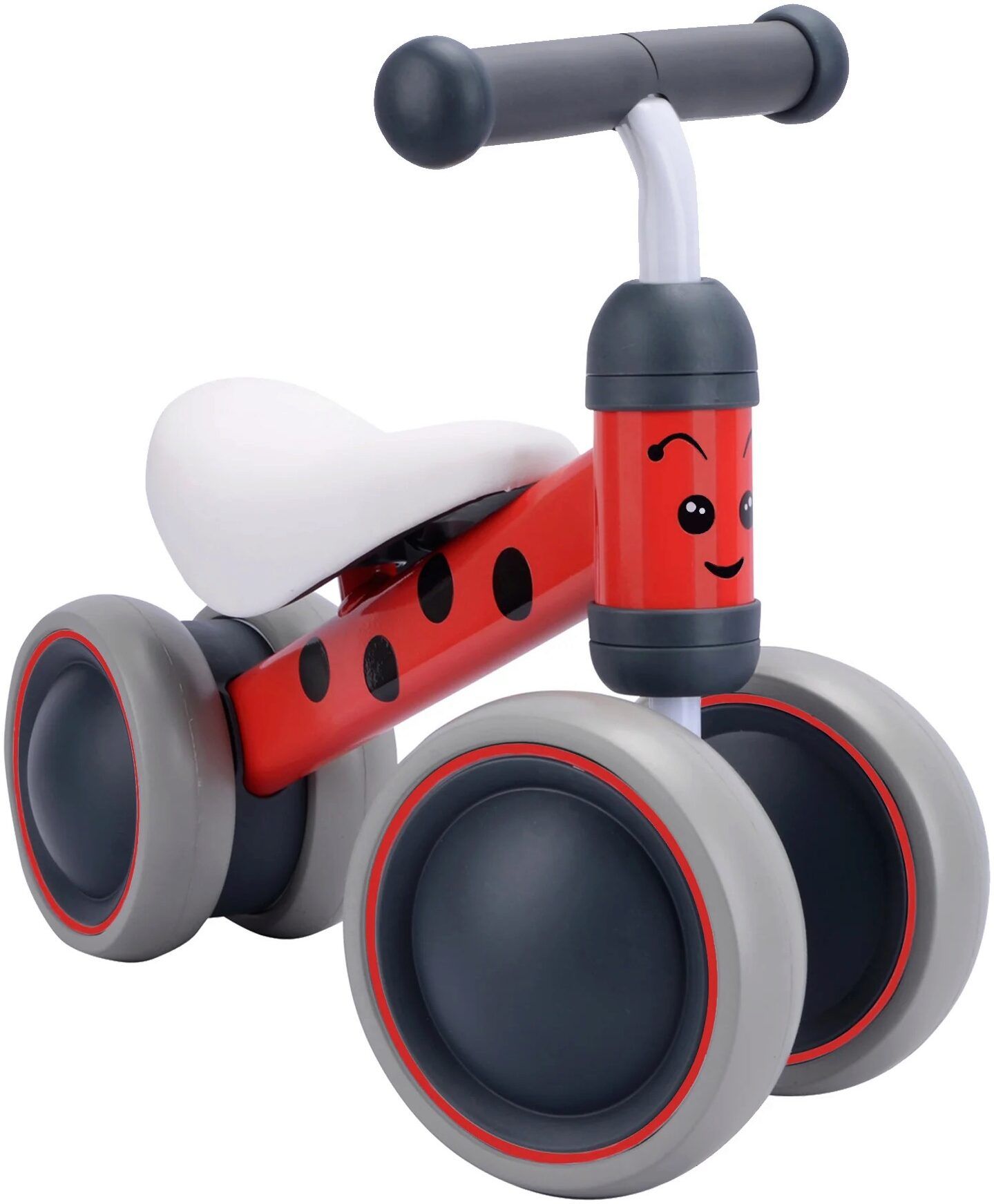 • A 4-wheel bike that features wide wheels all around for maximum stability and developmental milestone progress