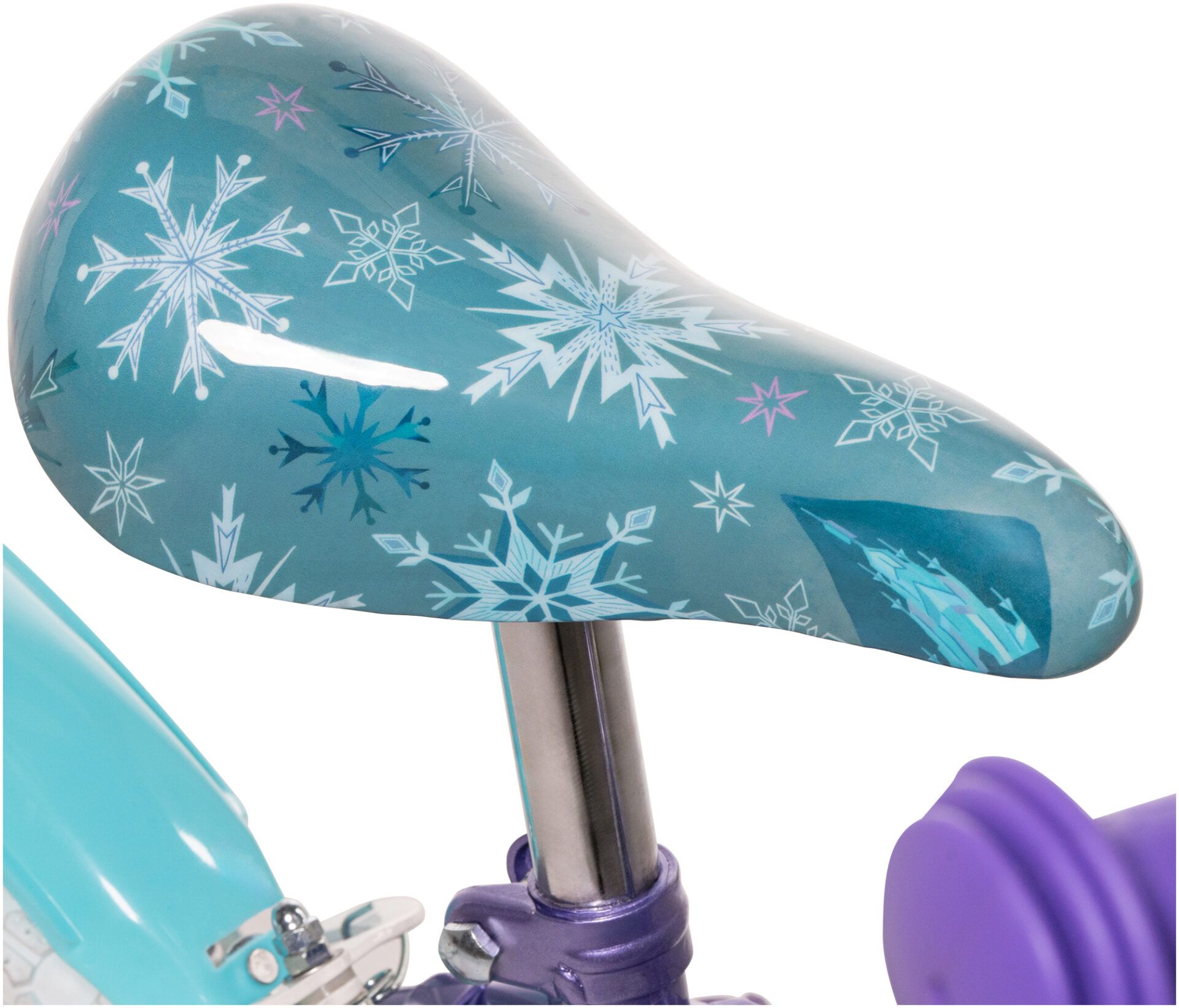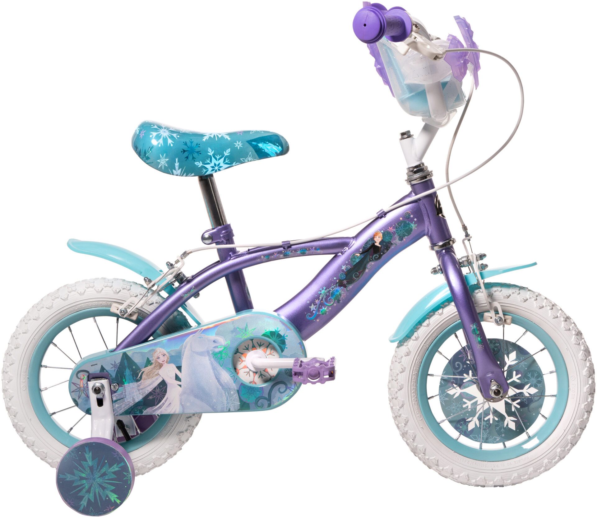 Magic is waiting for you in the form of this 12-inch, 30cm Disney Frozen bike for kids! This bike's beautifully designed steel frame in metallic purple portrays graphics a Disney Frozen Scene, and a whimsical snowy design allowing your rider to bring the wonderland with them wherever they go.