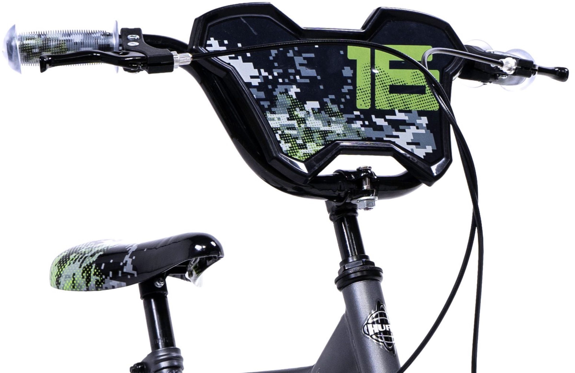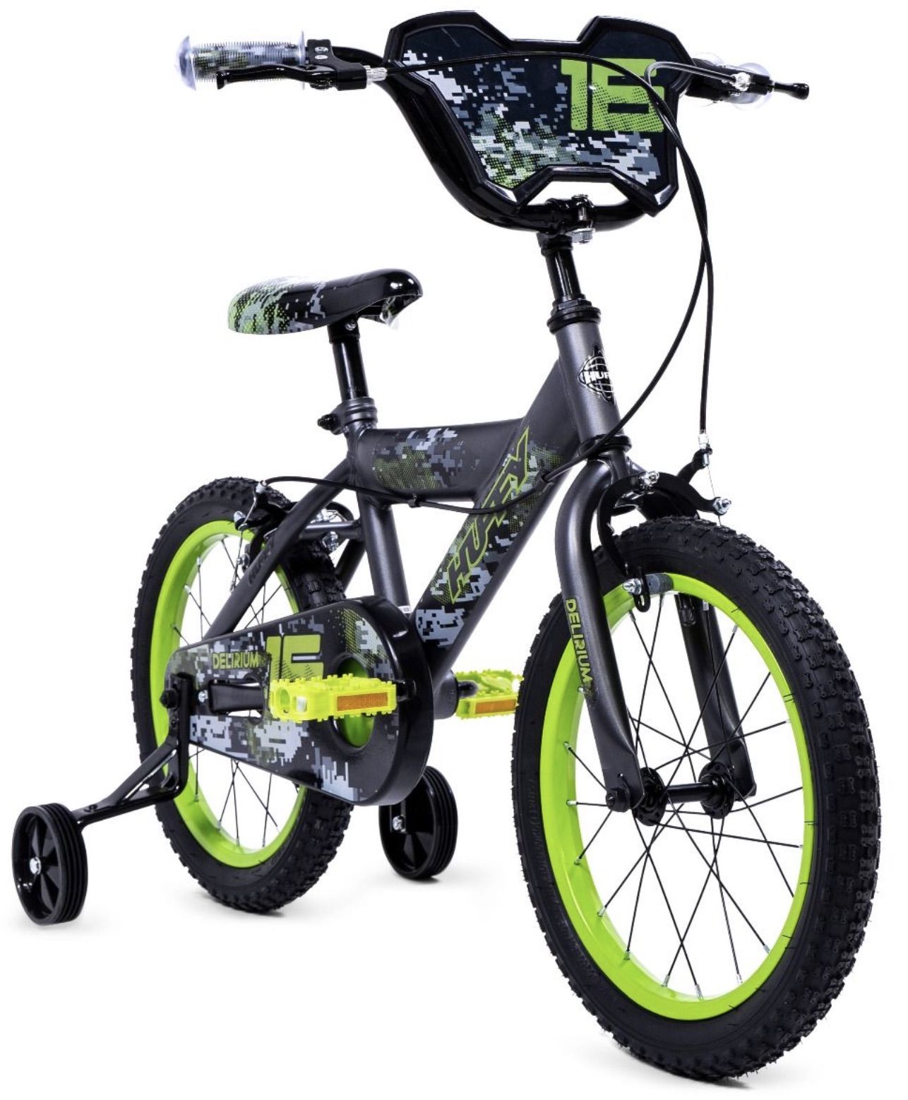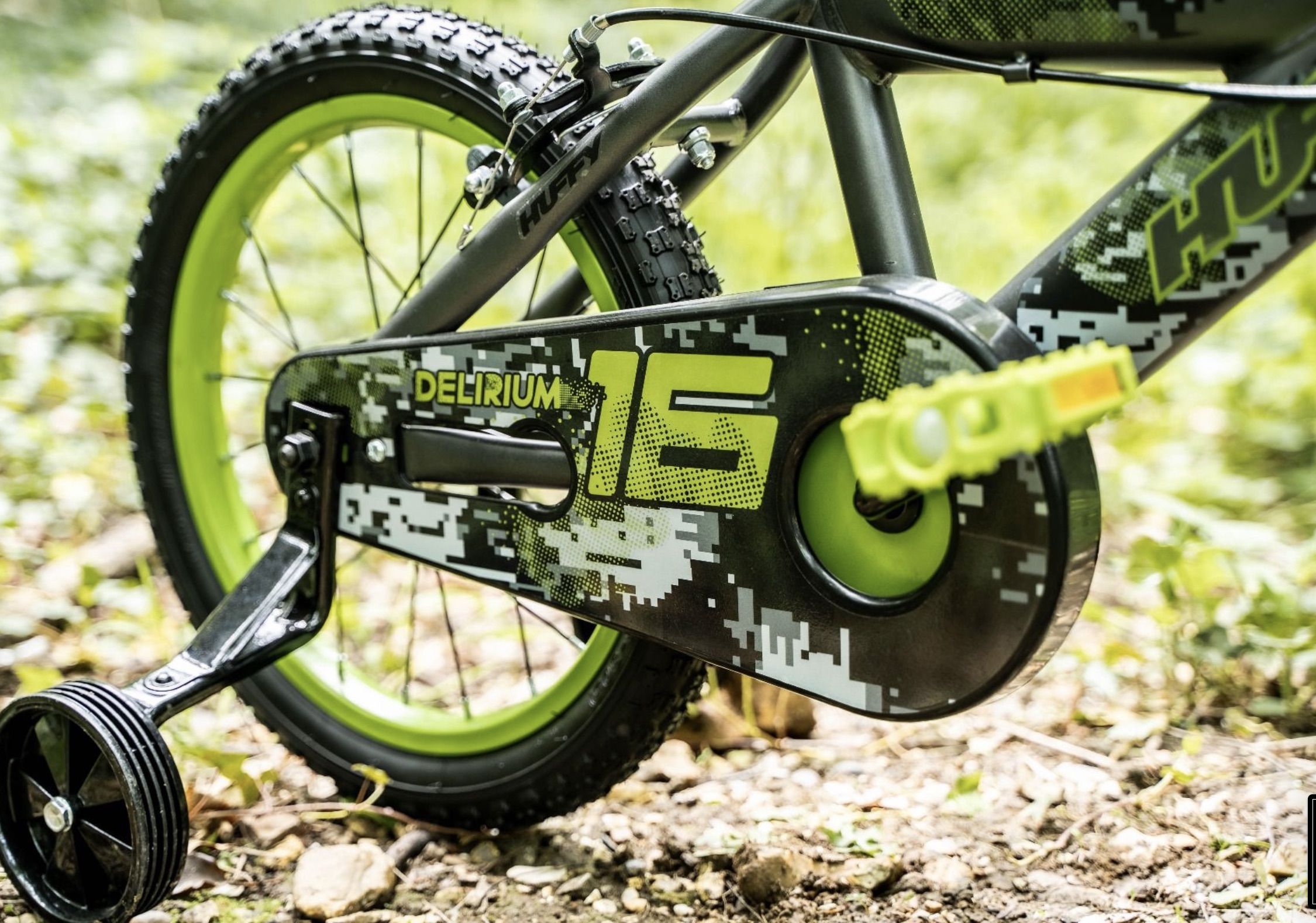 The Huffy Delirium with 16" wheels has a cool, edgy style. The matt silver frame, black graphics and racing number plate demand attention and guarantee fun! Easy-to-use caliper brakes deliver solid control. Translucent grips reveal dual-colour graphics underneath. The padded seat adds comfort to every adventure, and the adjustable seat post allows the bike to grow with your child. With our easy 5-step assembly, you’ll have this bicycle ready to ride in just a short time.