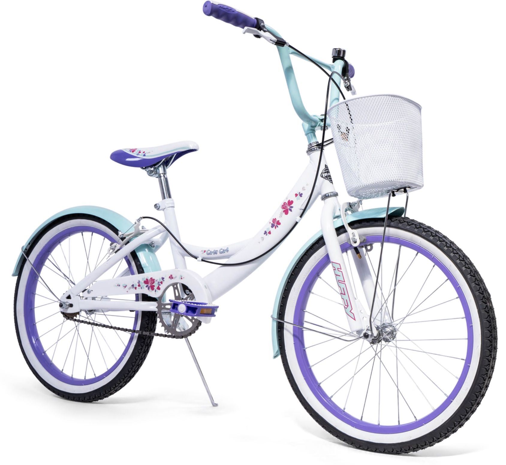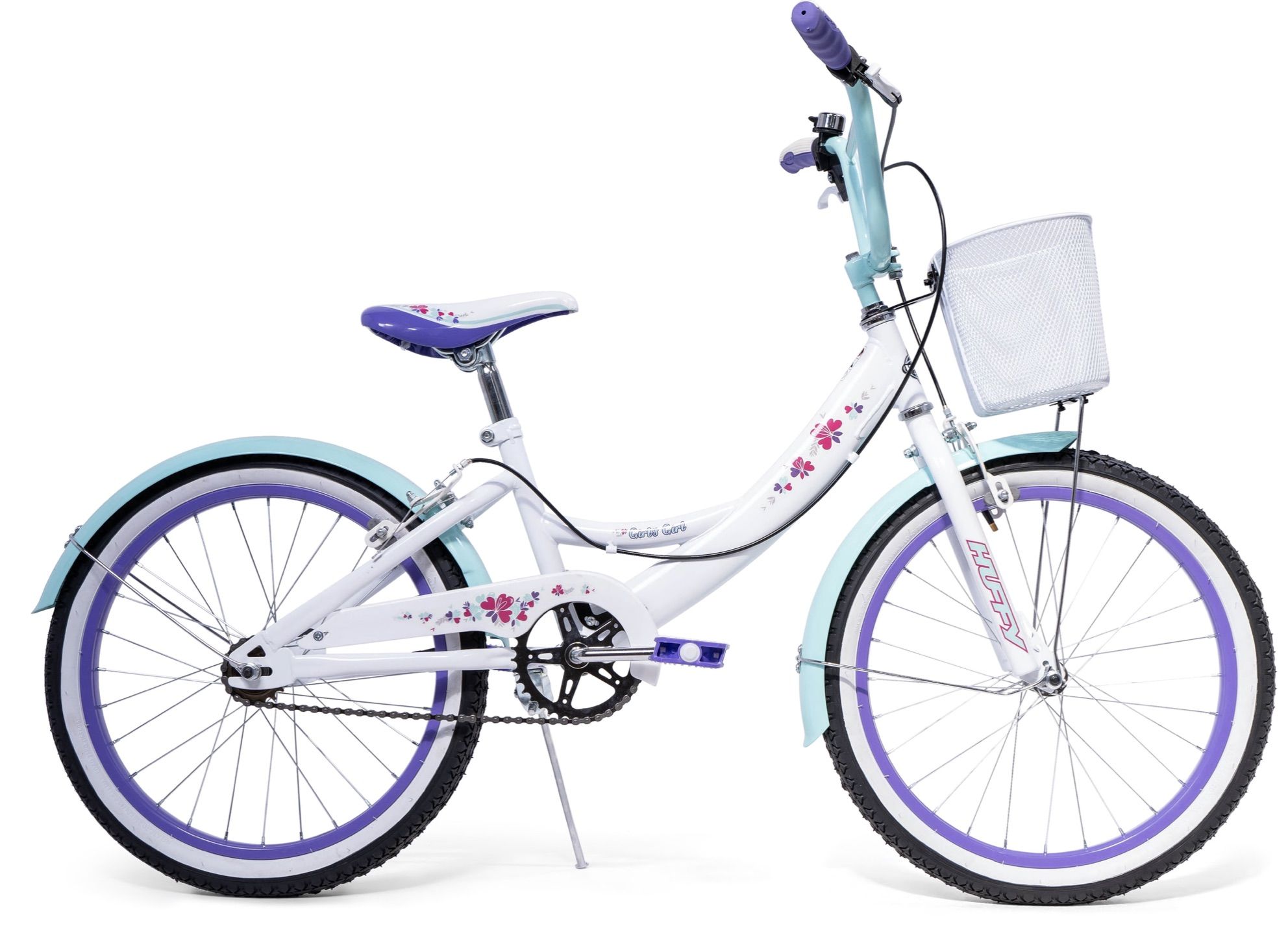 Your child will have smiles for miles once they have jumped onboard the 20" wheel bike from Huffy. This single-speed white bike features flower graphics on the frame and seat, along with a bright pop of colour from the sea crystal mudguards and handlebar.
