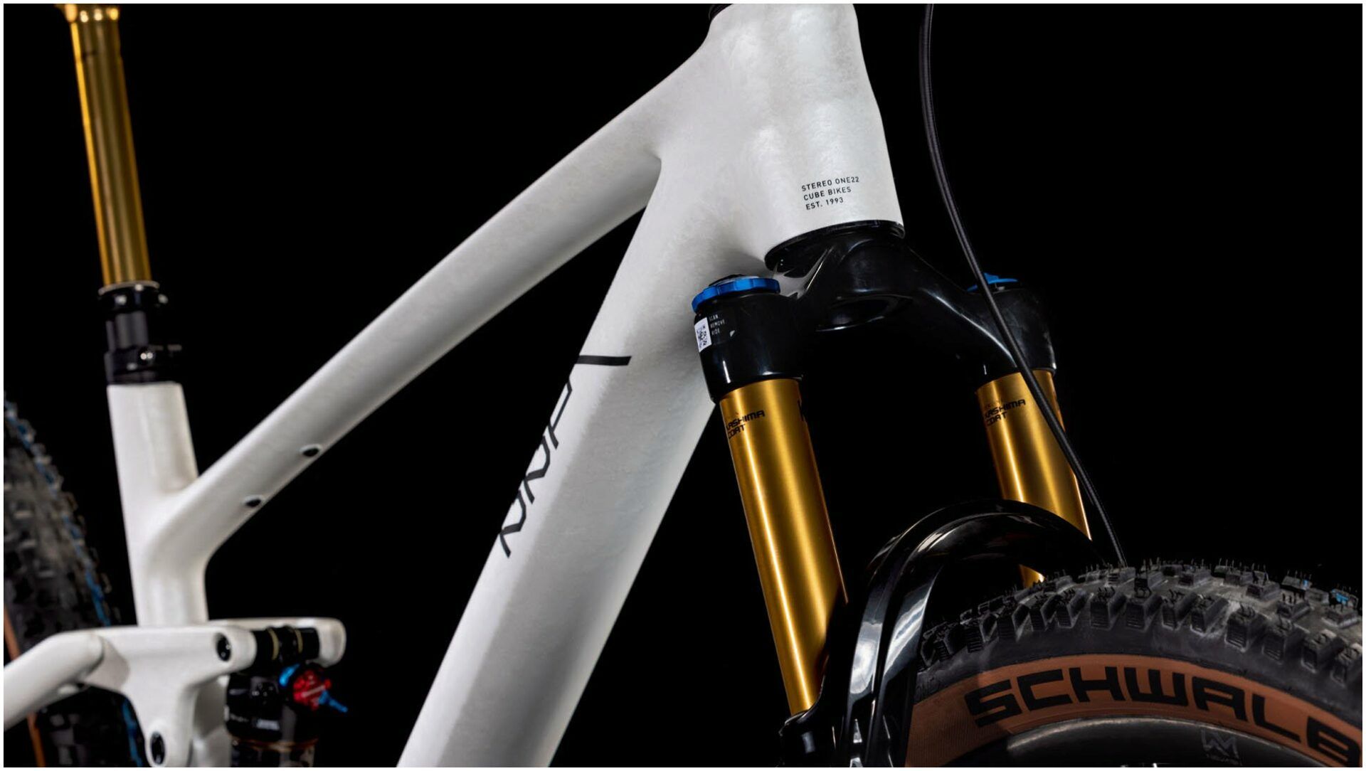 Light, lively, versatile and with added comfort - that's the Stereo ONE22 C:62 SLT in a nutshell. We started with Sram's XX Eagle Transmission, because it offers a huge gear range with electronic precision whilst setting a new standard for ruggedness and reliability. You'll be glad of the power of the matching SRAM Level Ultimate 4-piston hydraulic disc brakes because, with a 13mm Fox 34 Float Factory GripX fork up front and matching Float Factory shock at the rear, the corners will be coming up fast. Lightweight Newmen Phase 3 wheels and Schwalbe Nobby Nic and Wicked Will 2.4in tyres with Aerothan tubes help keep the rubber side down, and a one-piece carbon bar/stem combo puts you in full control.