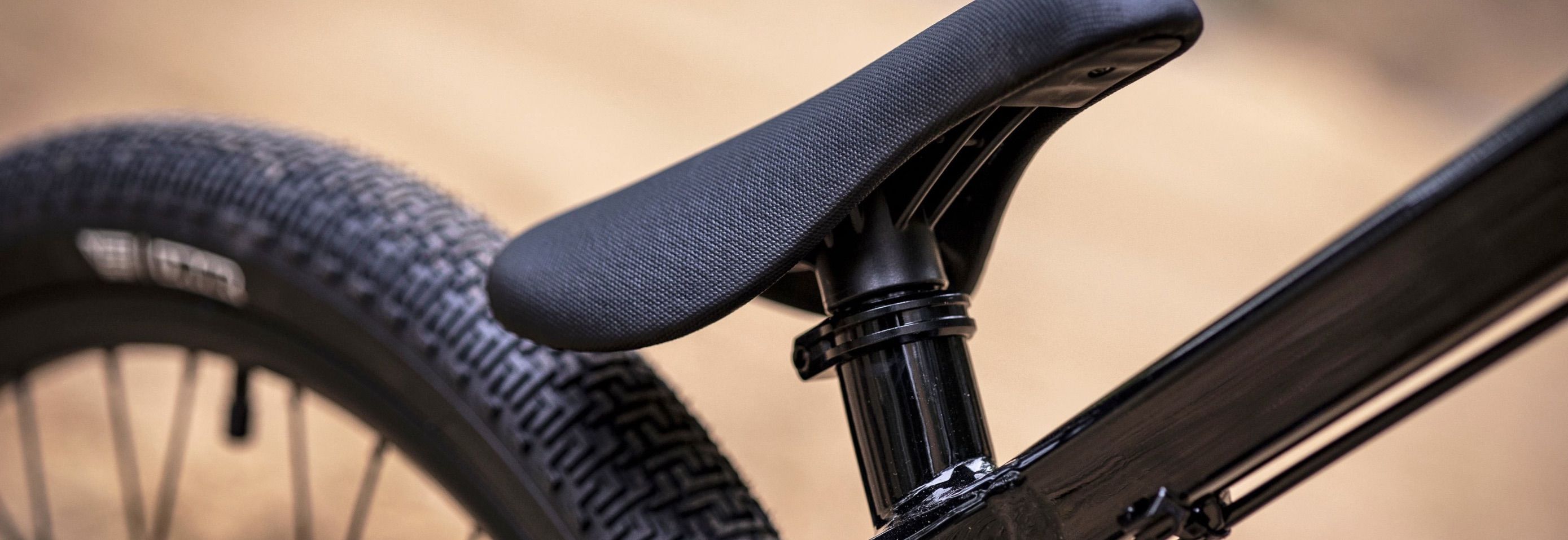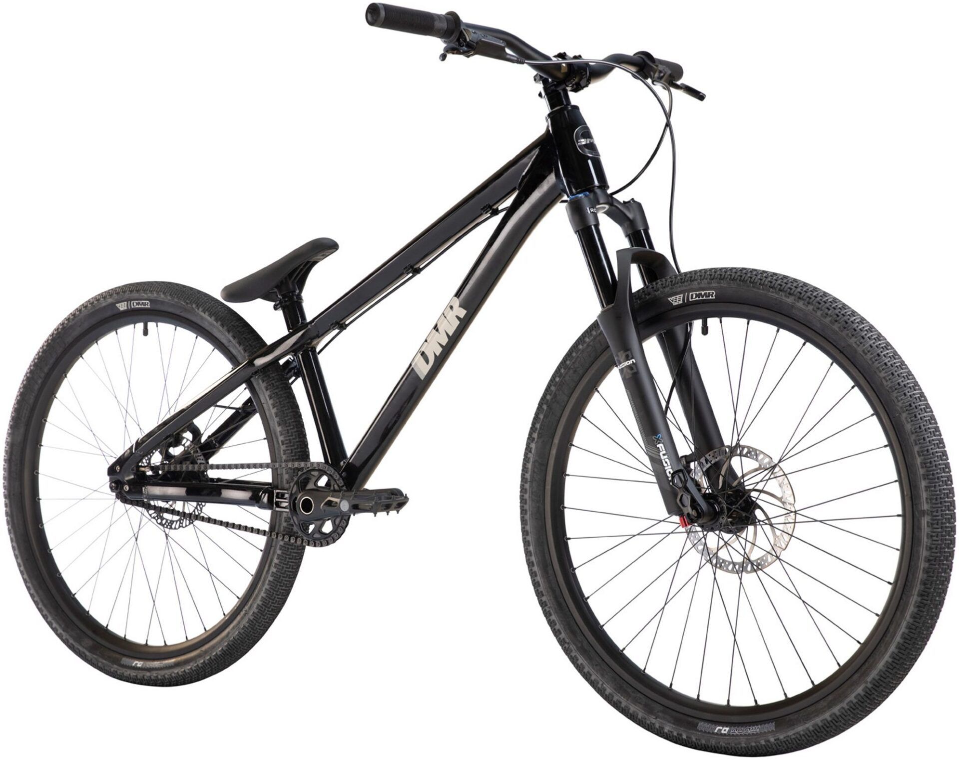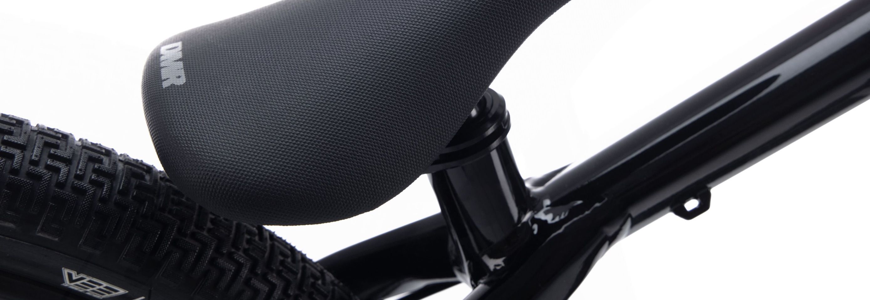 The Rhythm Pro complete jump bike is ready to roll with everything you need to start sending it at the local trails, skateparks and pumptracks. With a stout frame constructed from 6061 T6 aluminium alloy the Rhythm is light enough to fly, yet strong enough to shred all day long. The integrated sliding dropouts make adjusting chain tension a breeze. Dropouts are also interchangeable with our Rhythm geared dropouts if you want to change your setup later down the line. On this Pro model, suspension duties are handled on the front by the excellent X-Fusion Slant RC Air Fork. This fork is strong, lightweight and super adjustable thanks to the air spring. Tool free rebound and compression damping adjustment makes it easy to dial in your ride. The rest of the components are carefully selected with performance and strength in mind. Highlights include a DMR cockpit, DMR Moto DJ Tyres and Tektro Hydraulic brakes on the front and rear.